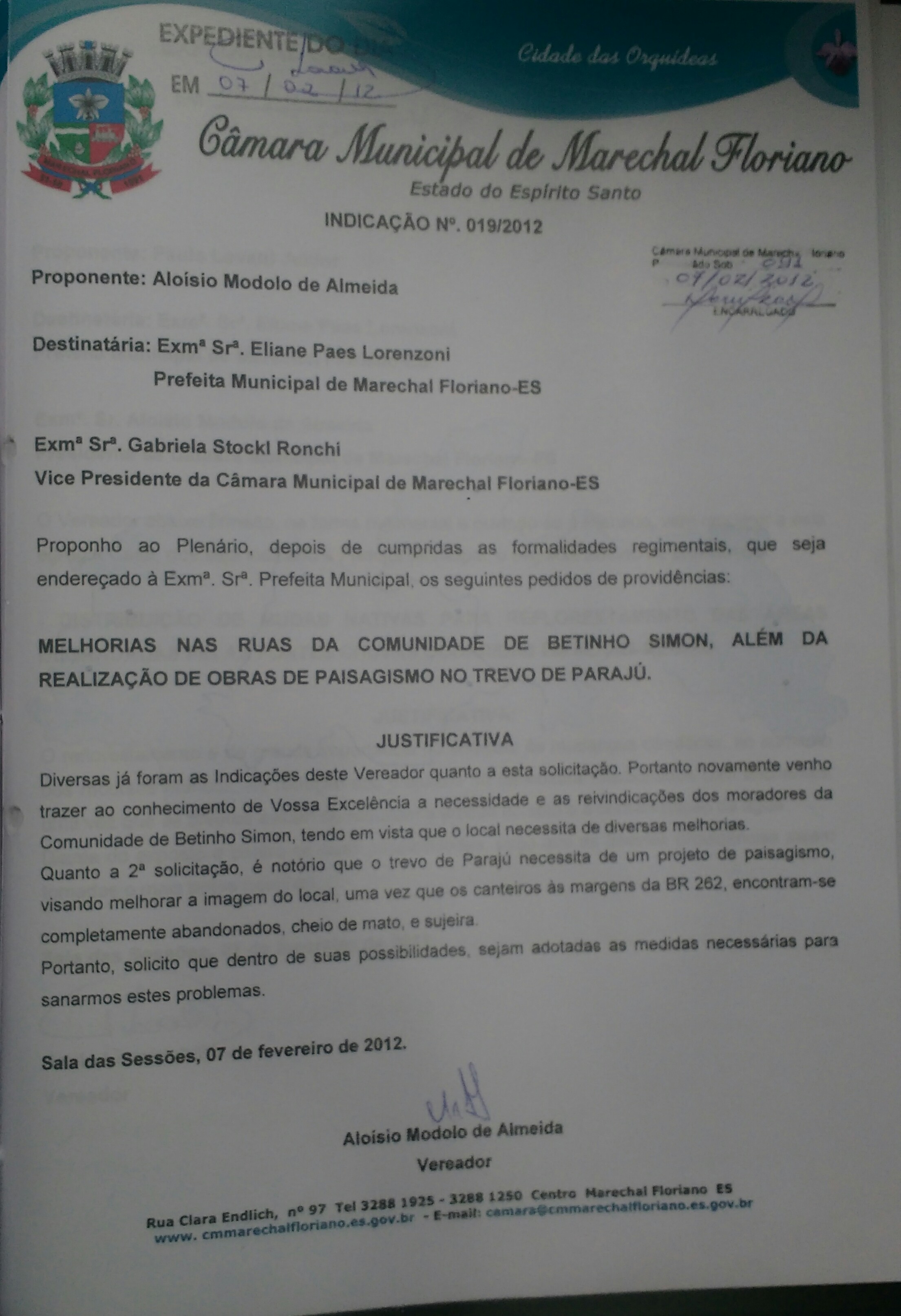 Indicação nº 19 de 2012