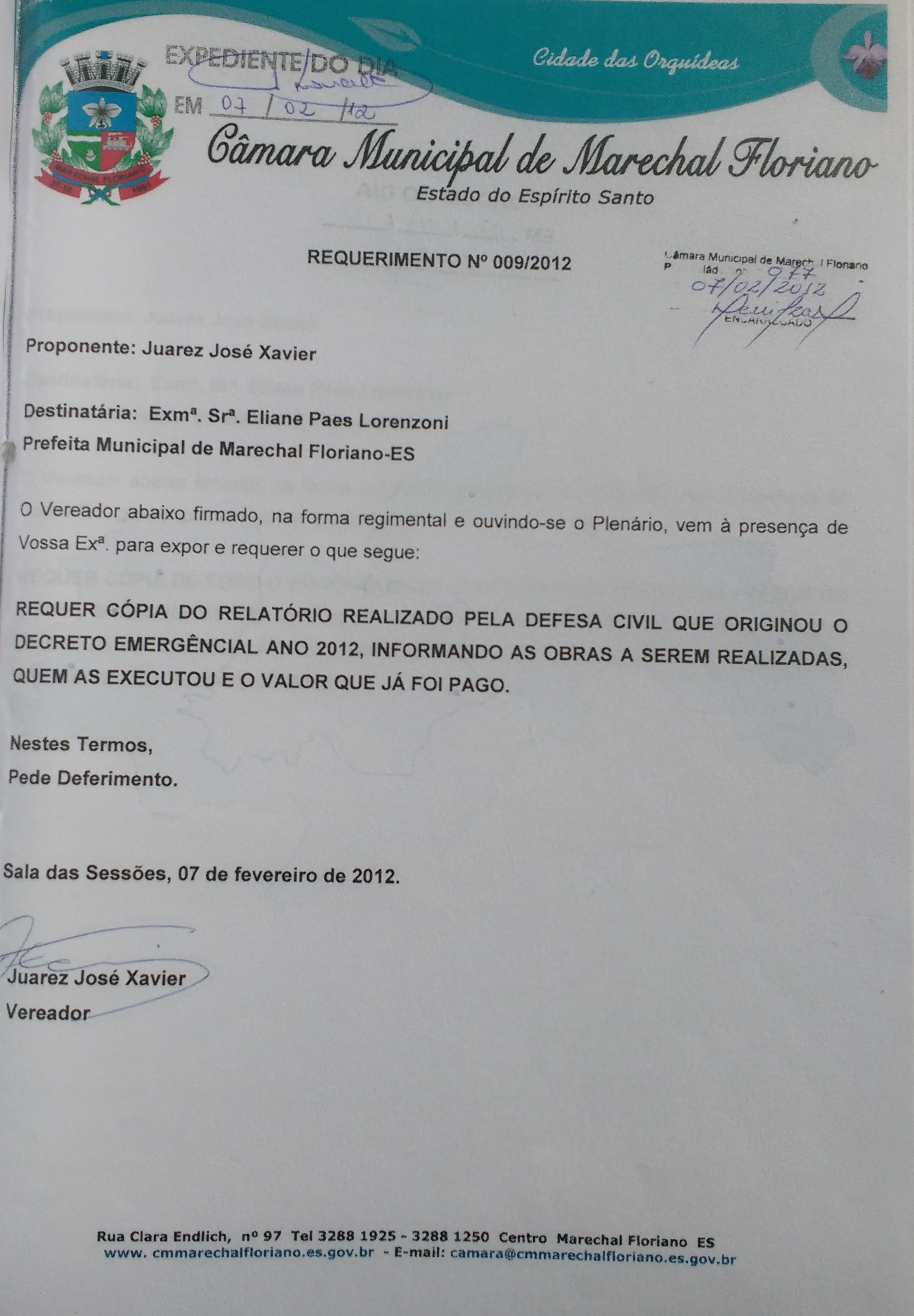 REQUER CÓPIA DO RELATÓRIO REALIZADO PELA DEFESA CIVIL QUE ORIGINOU O DECRETO EMERGENCIAL ANO 2012, INFORMANDO AS OBRAS A SEREM REALIZADAS, QUEM AS EXECUTOU E O VALOR QUE JÁ FOI PAGO.