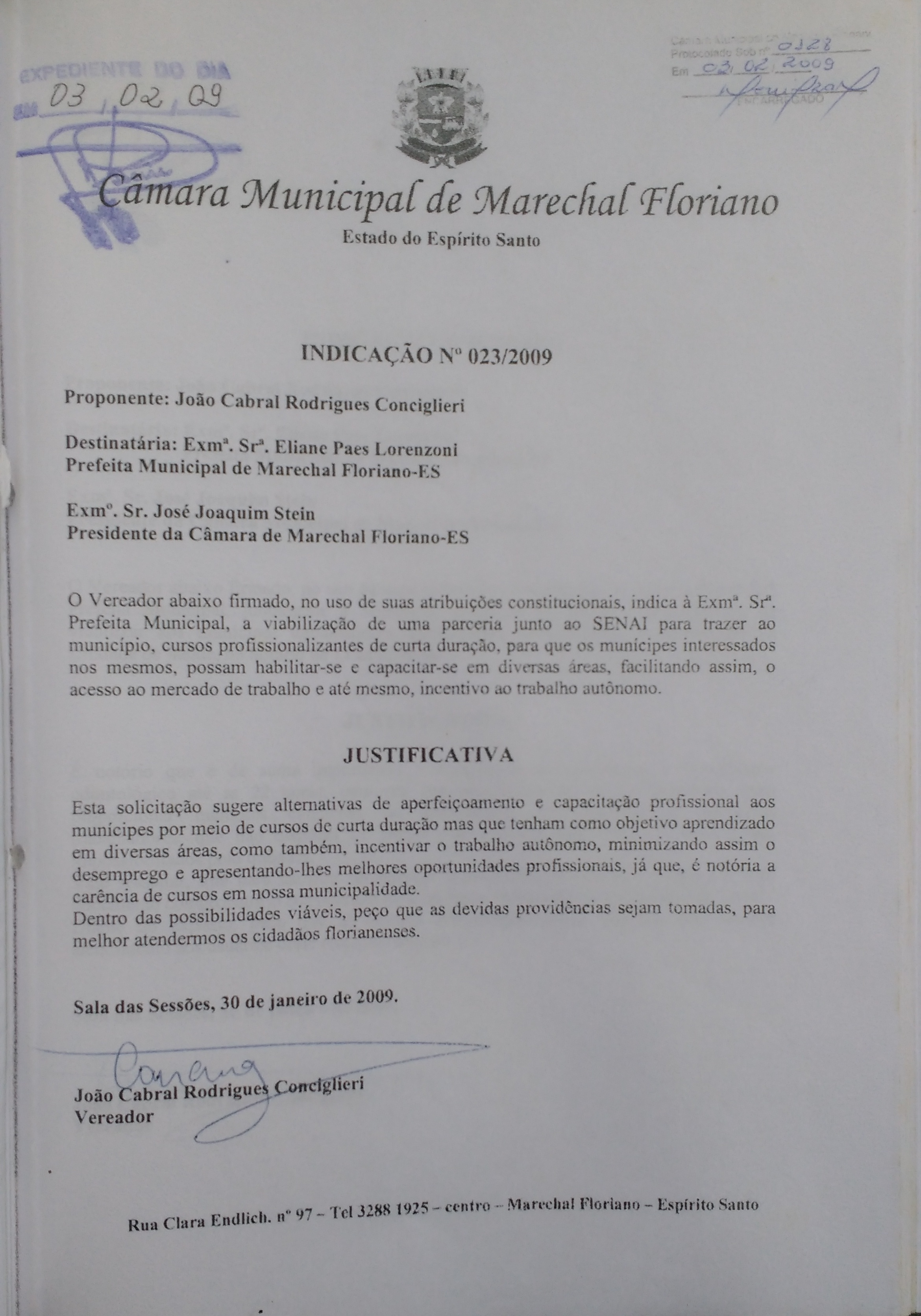 VIABILIZAÇÃO DE UMA PARCERIA JUNTO AO SENAI PARA TRAZER AO MUNICÍPIO, CURSOS PROFISSIONALIZANTES DE CURTA DURAÇÃO, PARA QUE OS MUNÍCIPES INTERESSADOS NOS MESMOS, POSSAM HABILITAR-SE E CAPACITAR-SE EM DIVERSAS ÁREAS, FACILITANDO ASSIM, O ACESSO AO MERCADO DE TRABALHO E ATÉ MESMO, INCETIVO AO TRABALHO AUTÔNOMO.