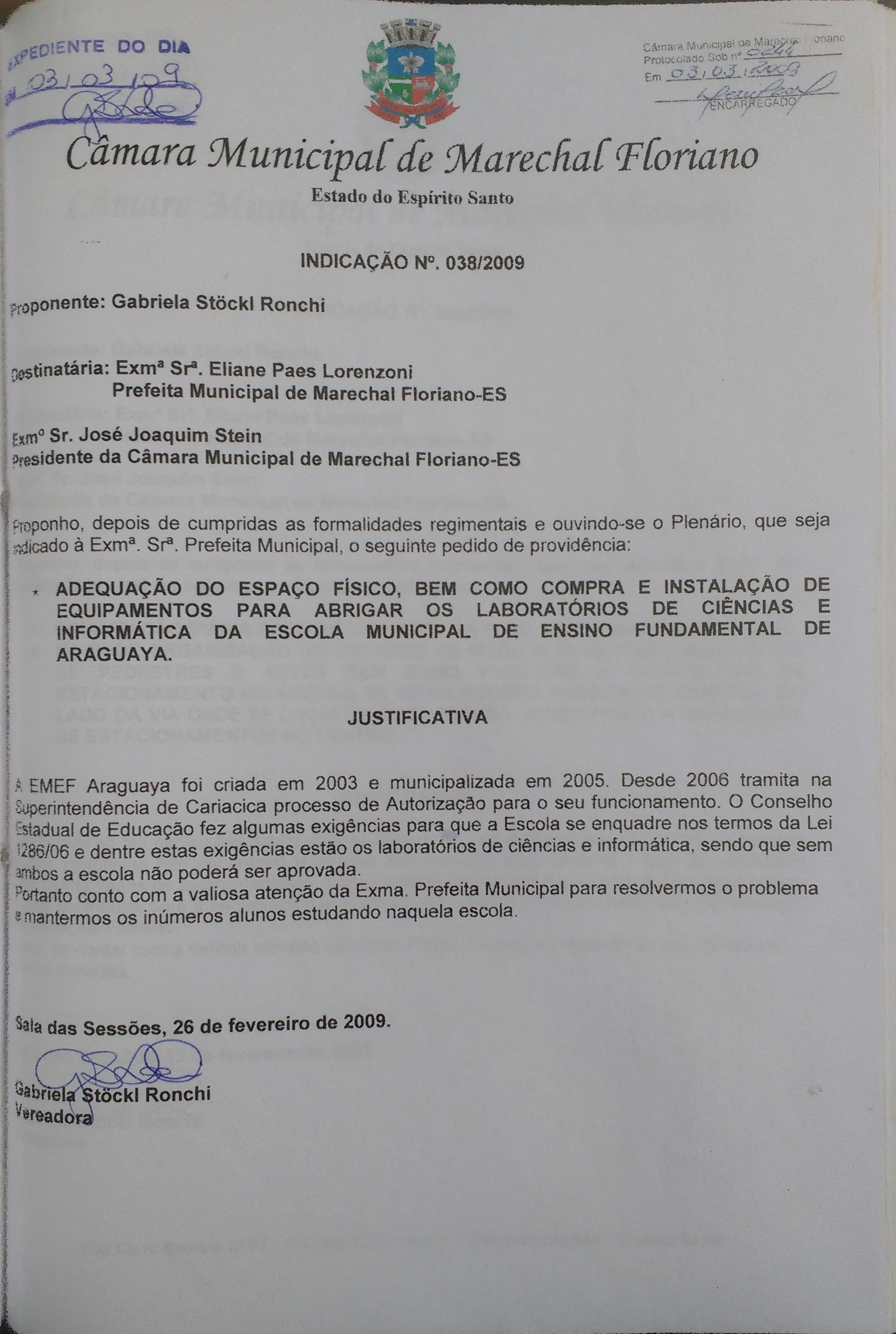 ADEQUAÇÃO DO ESPAÇO FÍSICO, BEM COMO COMPRA E INSTALAÇÃO DE EQUIPAMENTOS PARA ABRIGAR OS LABORATÓRIOS DE CIÊNCIAS E INFORMÁTICA DA ESCOLA MUNICIPAL DE ENSINO FUNDAMENTAL DE ARAGUAYA.