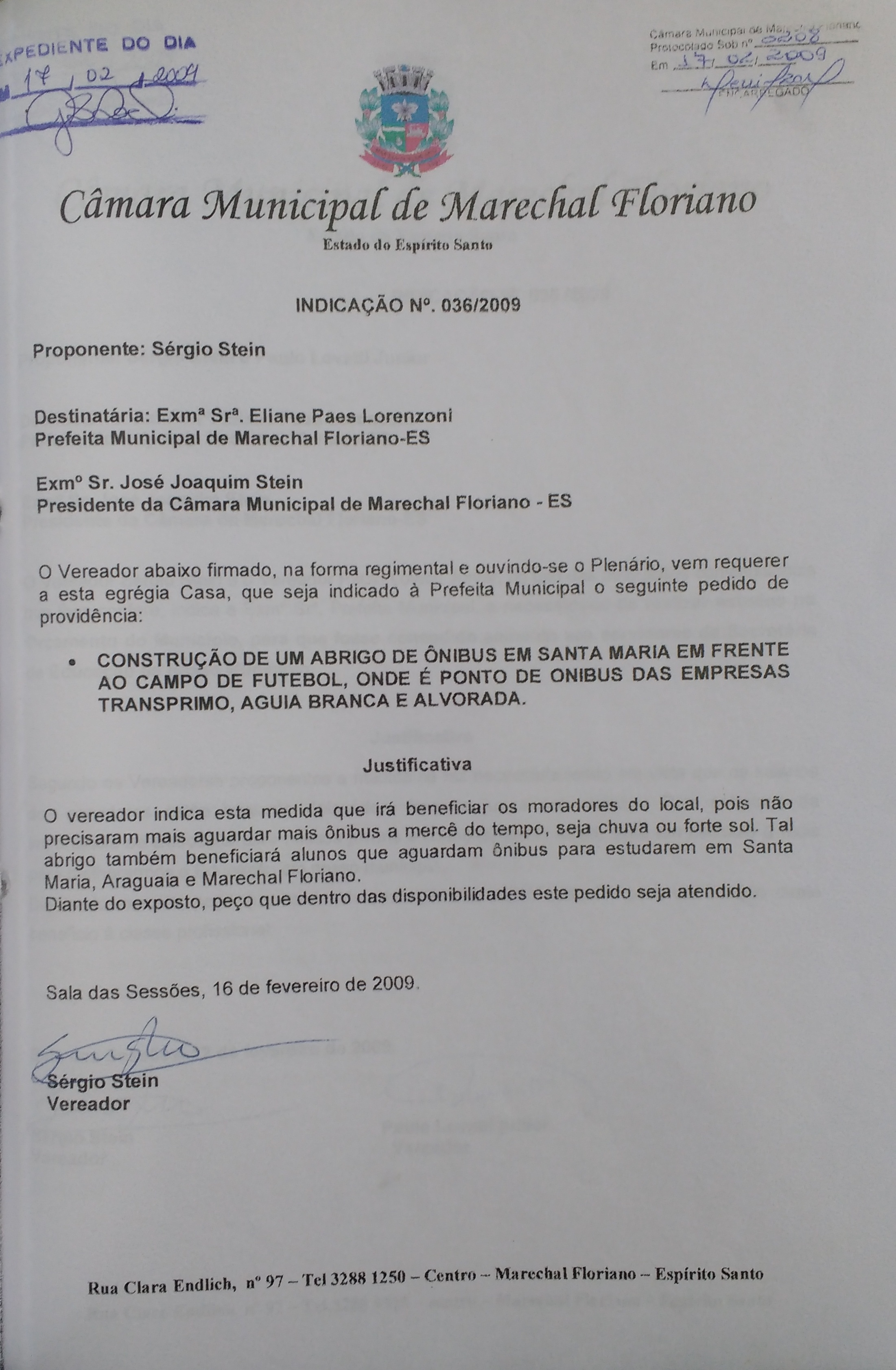 CONSTRUÇÃO DE UM ABRIGO DE ÔNIBUS EM SANTA MARIA EM FRENTE AO CAMPO DE FUTEBOL, ONDE É PONTO DE ÔNIBUS DAS EMPRESAS TRANSPRIMO, ÁGUIA BRANCA E ALVORADA.
