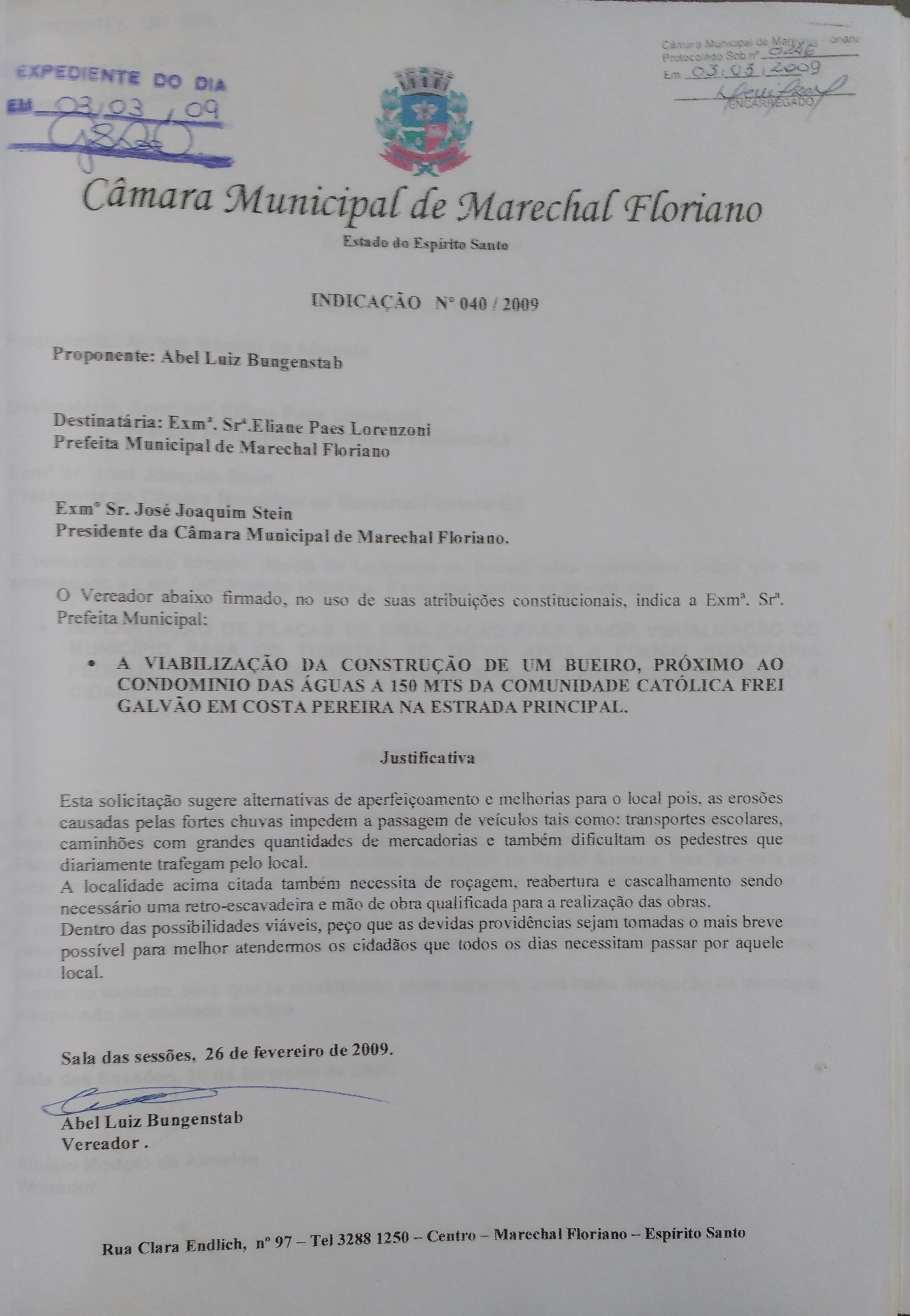A VIABILIZAÇÃO DA CONSTRUÇÃO DE UM BUEIRO, PRÓXIMO AO CONDOMÍNIO DAS ÁGUAS A 150 MTS DA COMUNIDADE CATÓLICA FREI GALVÃO EM COSTA PEREIRA NA ESTRADA PRINCIPAL.