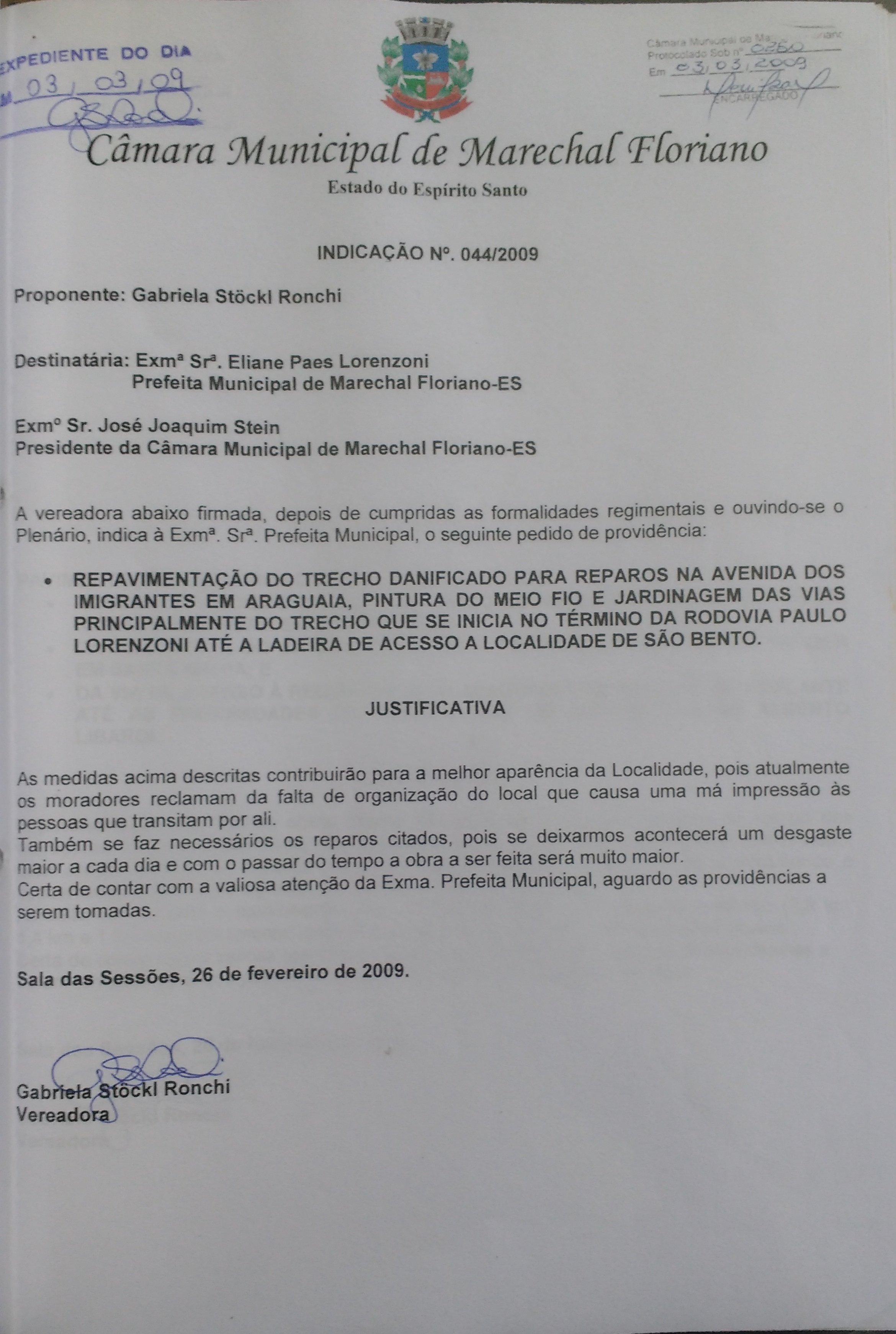 REPAVIMENTAÇÃO DO TRECHO DANIFICADO PARA REPAROS NA AVENIDA DOS IMIGRANTES EM ARAGUAIA, PINTURA DO MEIO FIO E JARDINAGEM DAS VIAS PRINCIPALMENTE DO TRECHO QUE SE INICIA NO TÉRMINO DA RODOVIA PAULO LORENZONI ATÉ A LADEIRA DE ACESSO A LOCALIDADE DE SÃO BENTO.