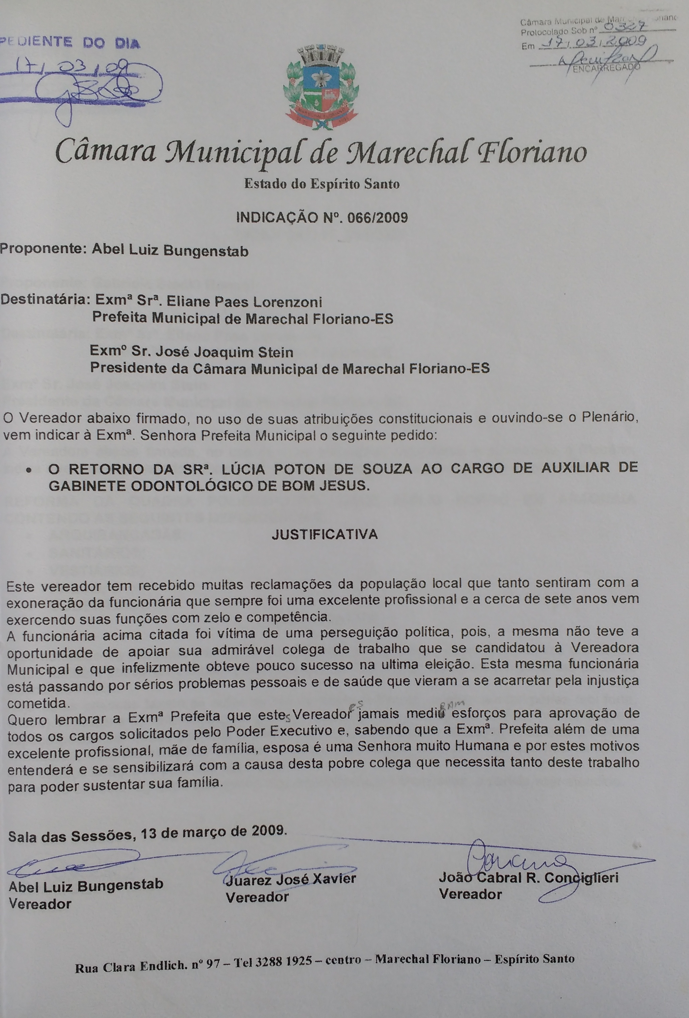 O RETORNO DA SRª LÚCIA POTON DE SOUZA AO CARGO DE AUXILIAR DE GABINETE ODONTOLÓGICO DE BOM JESUS.