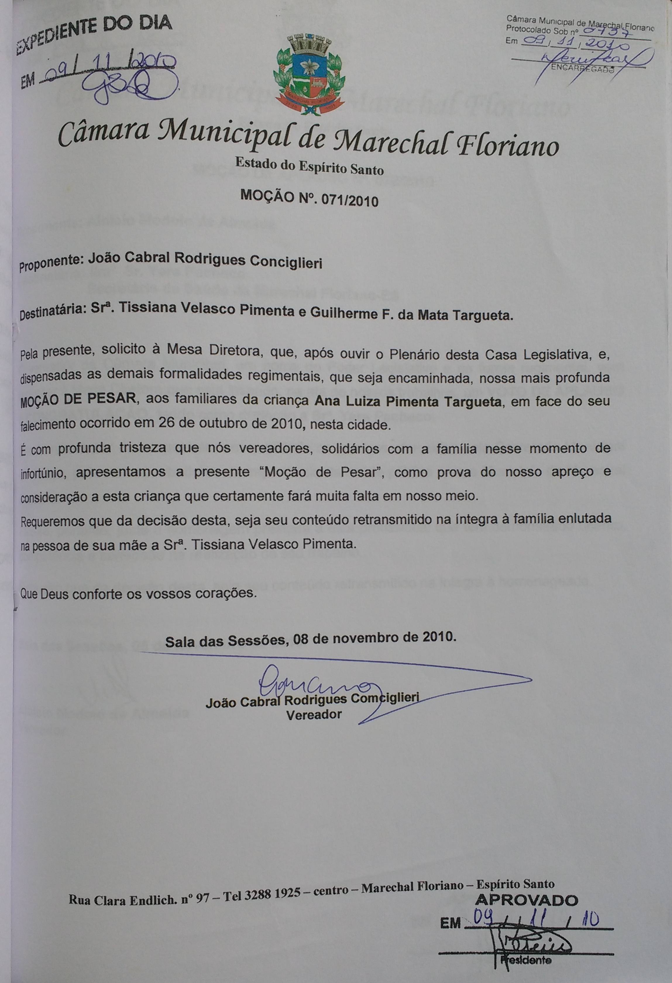 MOÇÃO DE PESAR A CRIANÇA ANA LUIZA PIMENTA TARGUETA