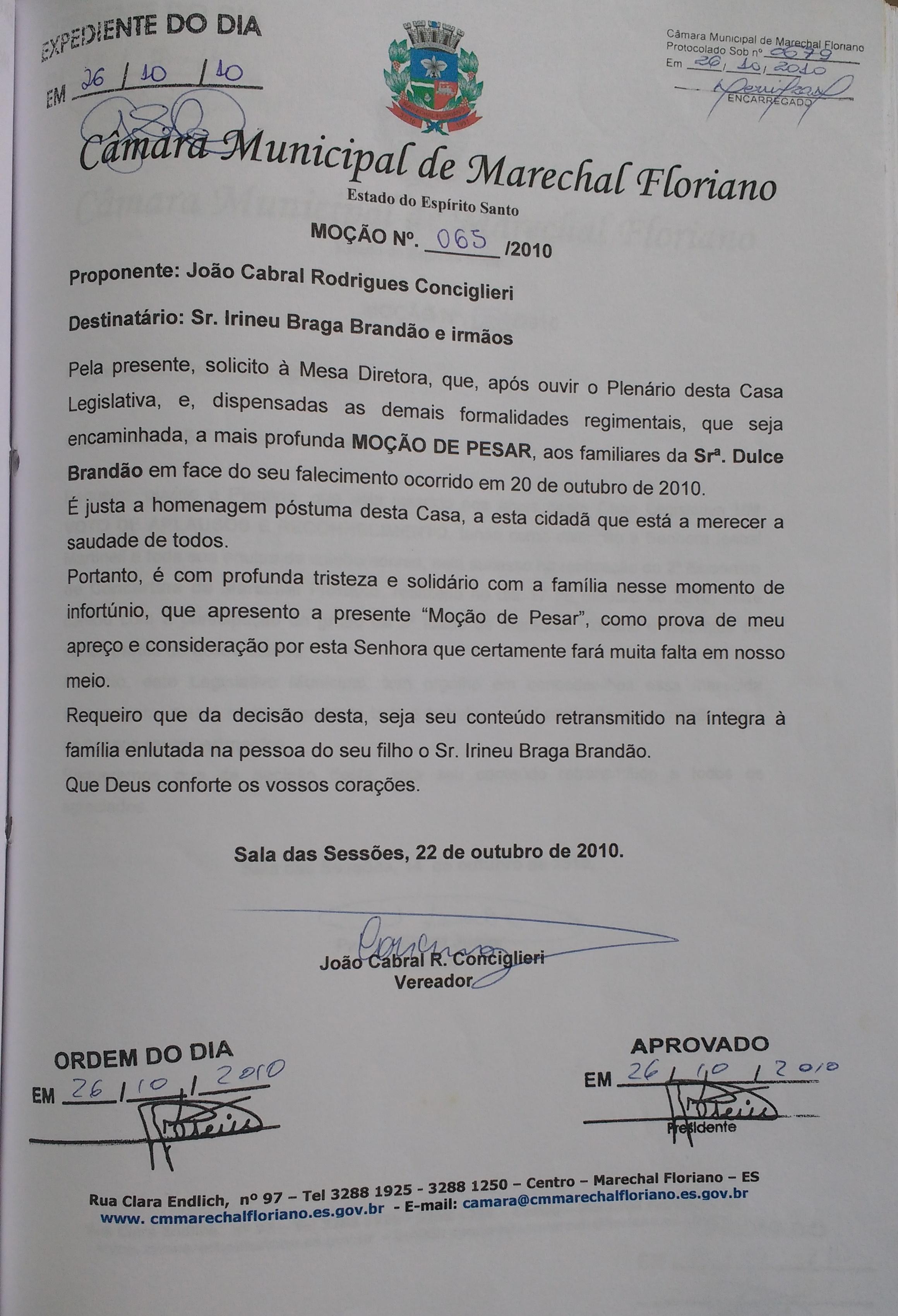 Moção nº 65 de 2010