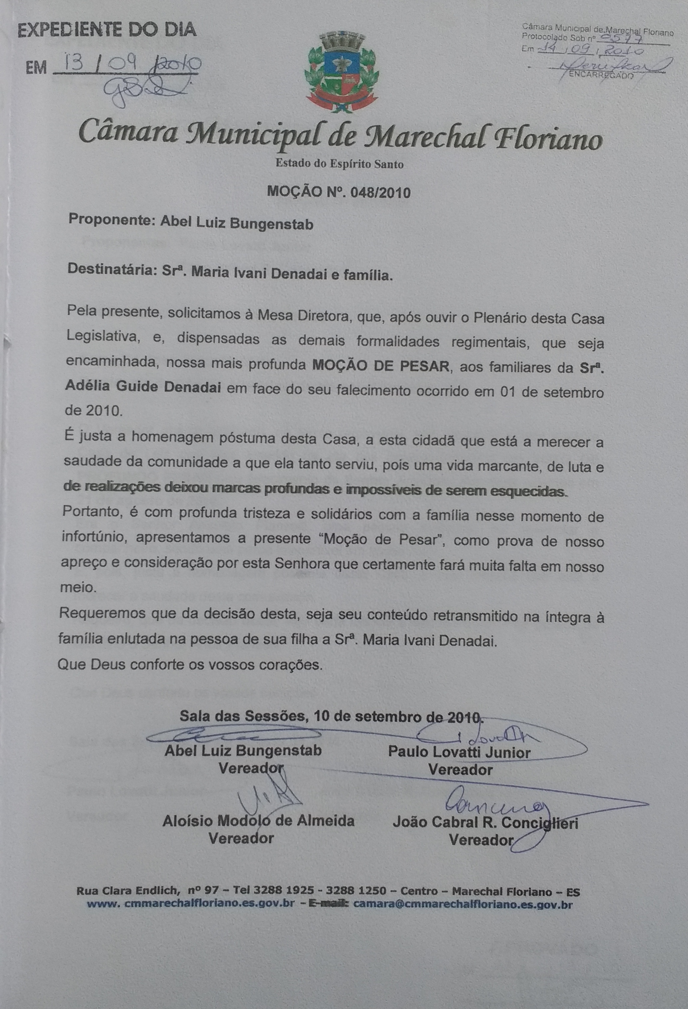 MOÇÃO DE PESAR AO SRª. ADÉLIA GUIDE DENADAI