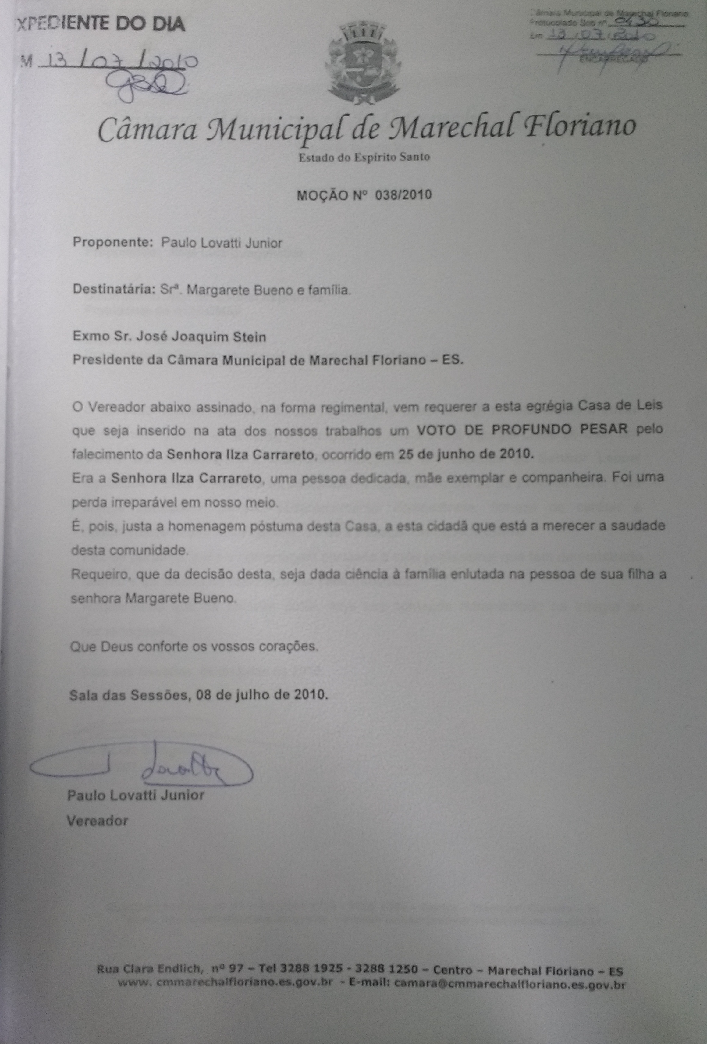VOTO DE PROFUNDO PESAR A SENHORA ILZA CARRARETO