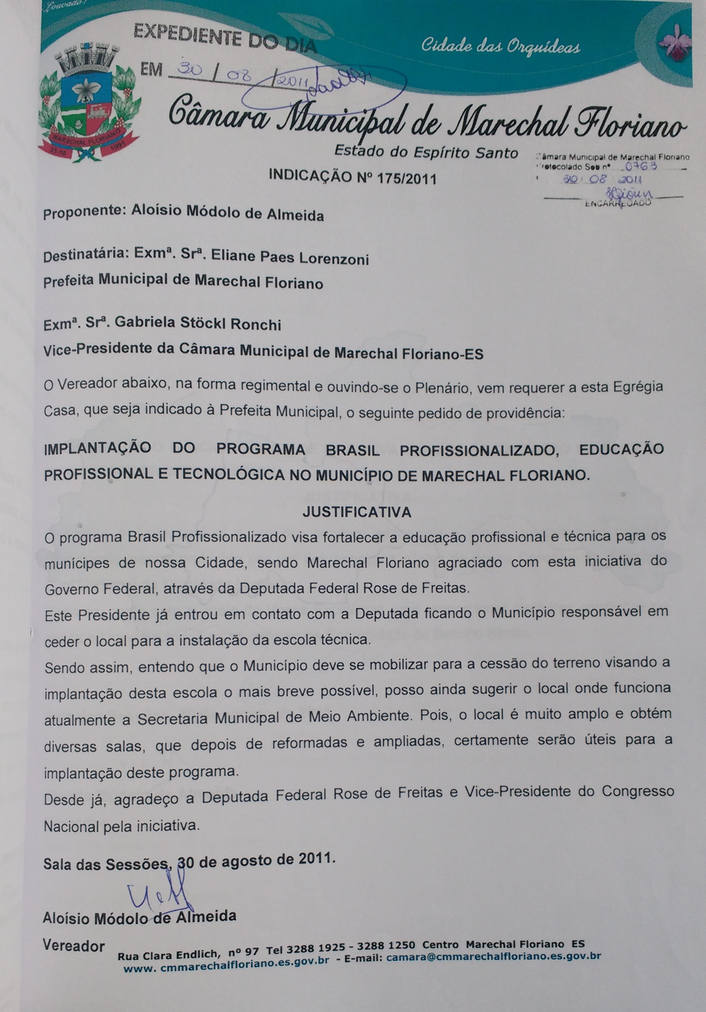 IMPLANTAÇÃO DO PROGRAMA BRASIL PROFISSIONALIZADO, EDUCAÇÃO PROFISSIONAL E TECNOLÓGICA NO MUNICÍPIO DE MARECHAL FLORIANO.