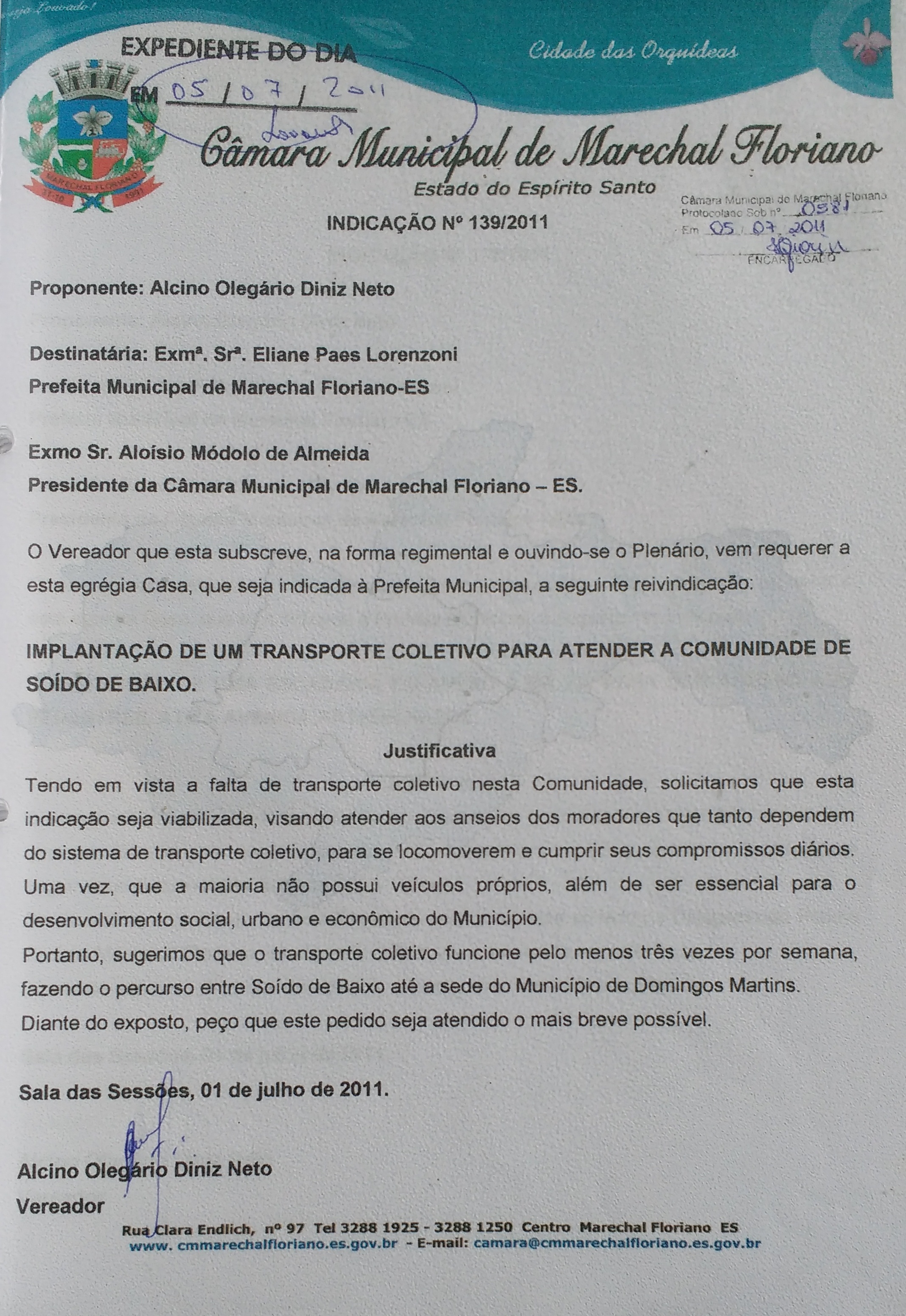 IMPLANTAÇÃO DE UM TRANSPORTE COLETIVO PARA ATENDER A COMUNIDADE DE SOÍDO DE BAIXO.