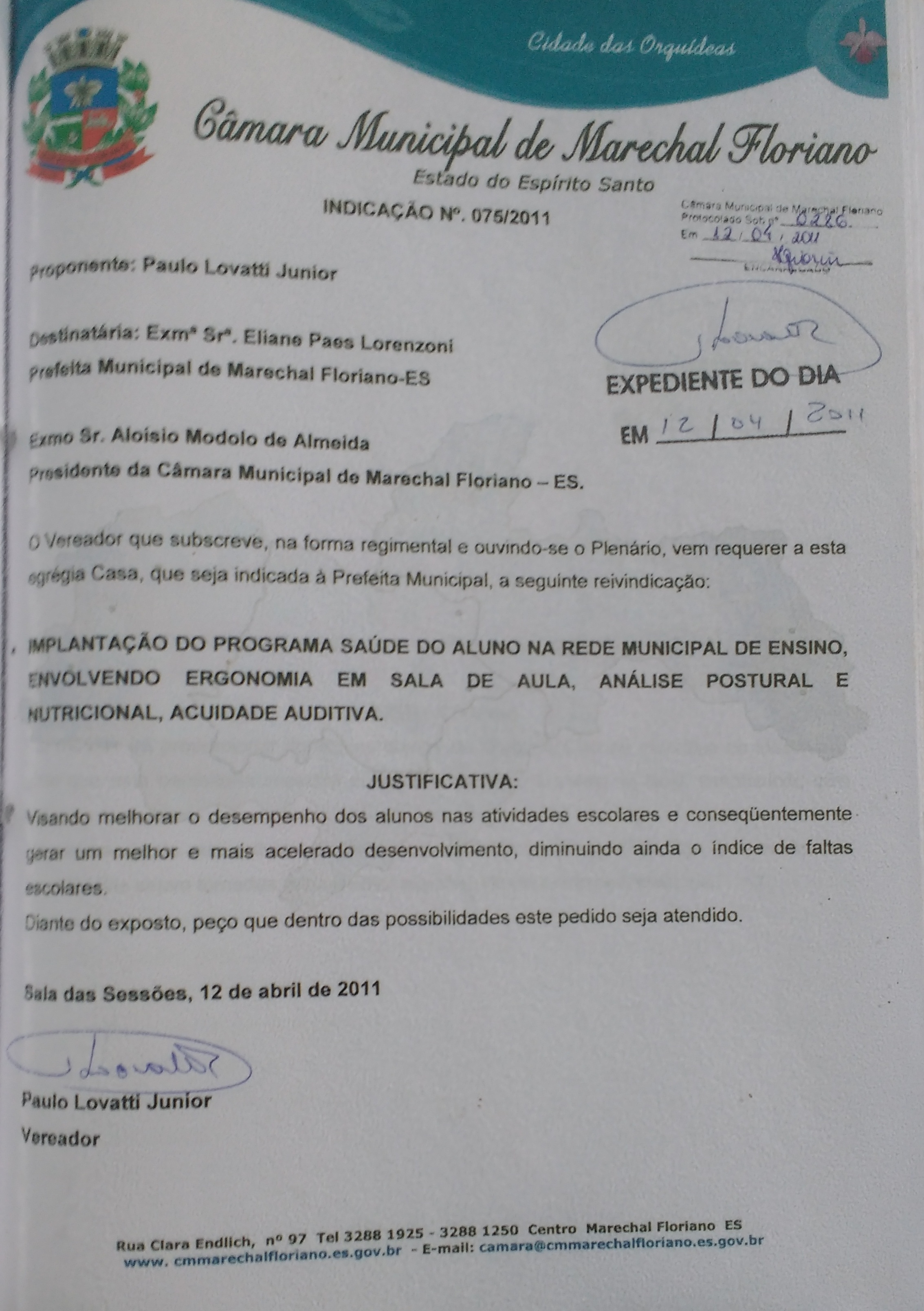 IMPLANTAÇÃO DO PROGRAMA DE SAÚDE DO ALUNO NA REDE MUNICIPAL DE ENSINO, ENVOLVENDO ERGONOMIA EM SALA DE AULA, ANÁLISE POSTURAL E NUTRICIONAL, ACUIDADE AUDITIVA.