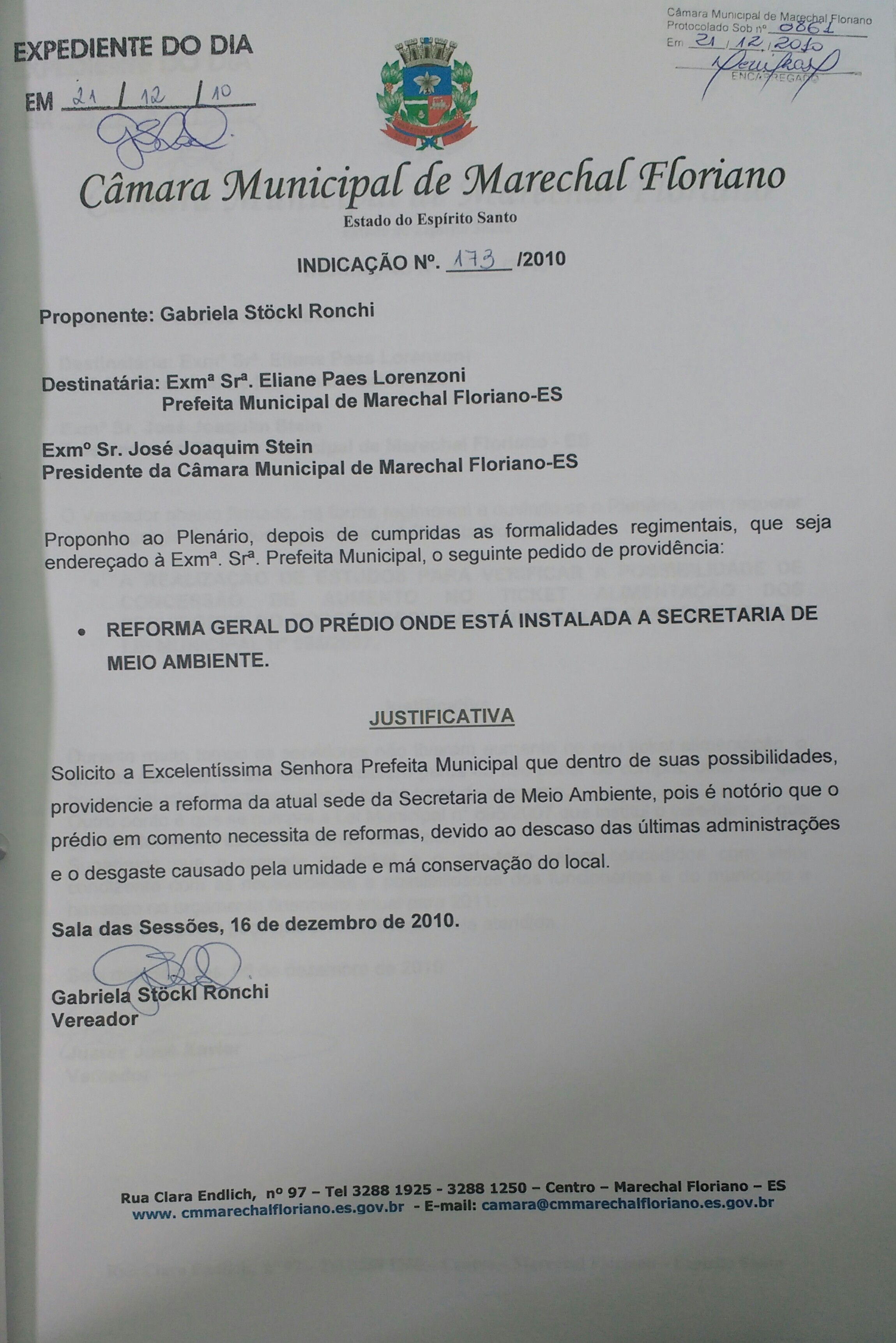 Indicação nº 173 de 2010