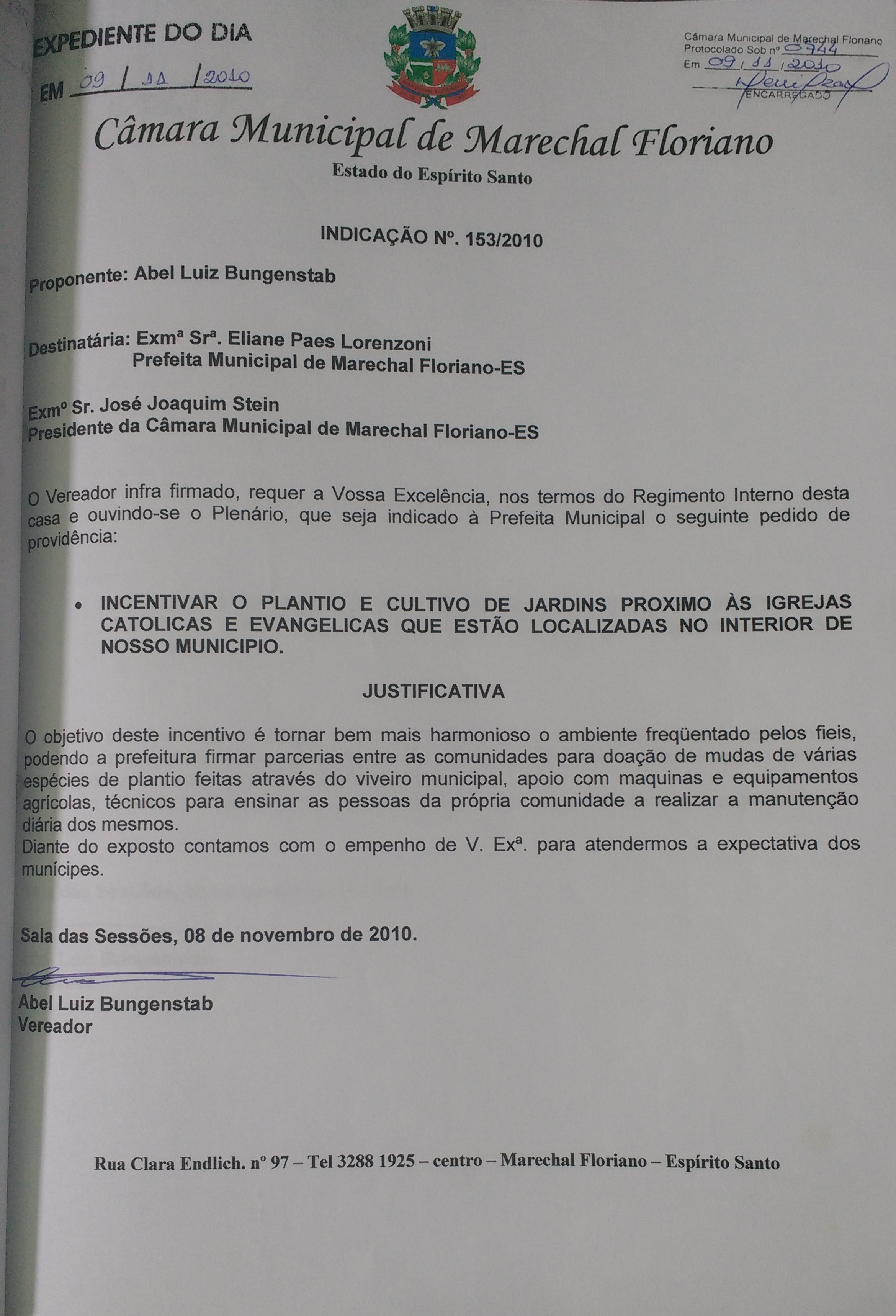 Indicação nº 153 de 2010