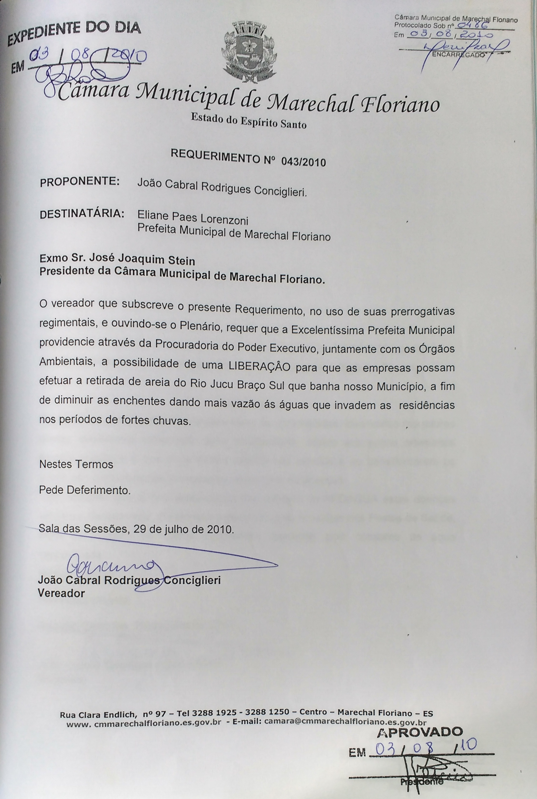 LIBERAÇÃO PARA RETIRADA DE AREIA DO RIO JUCU BRAÇO SUL.