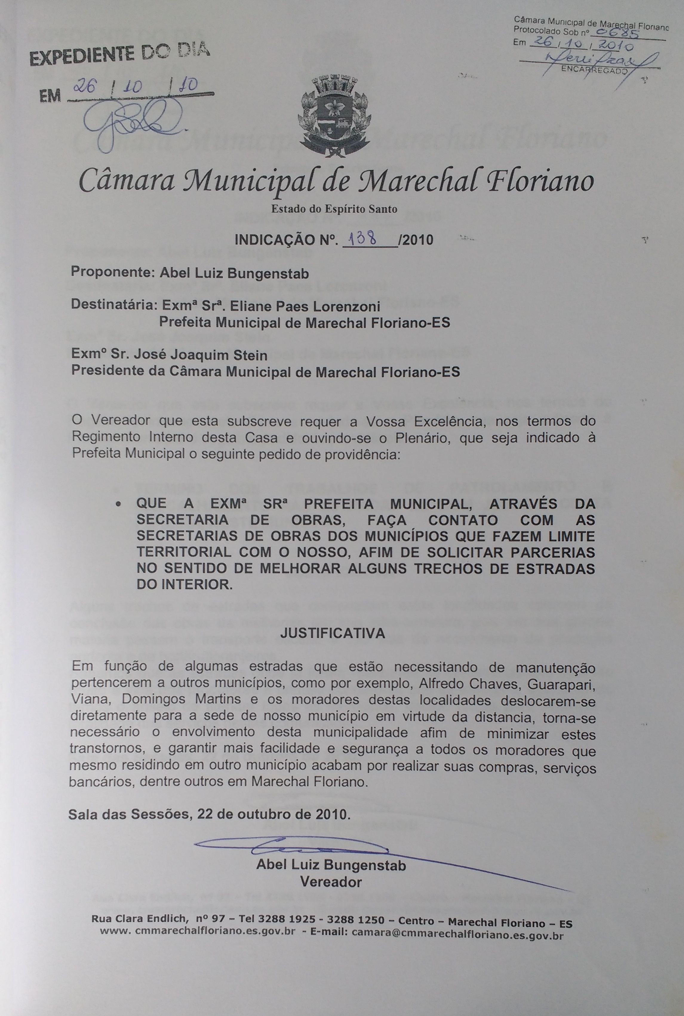 Indicação nº 138 de 2010