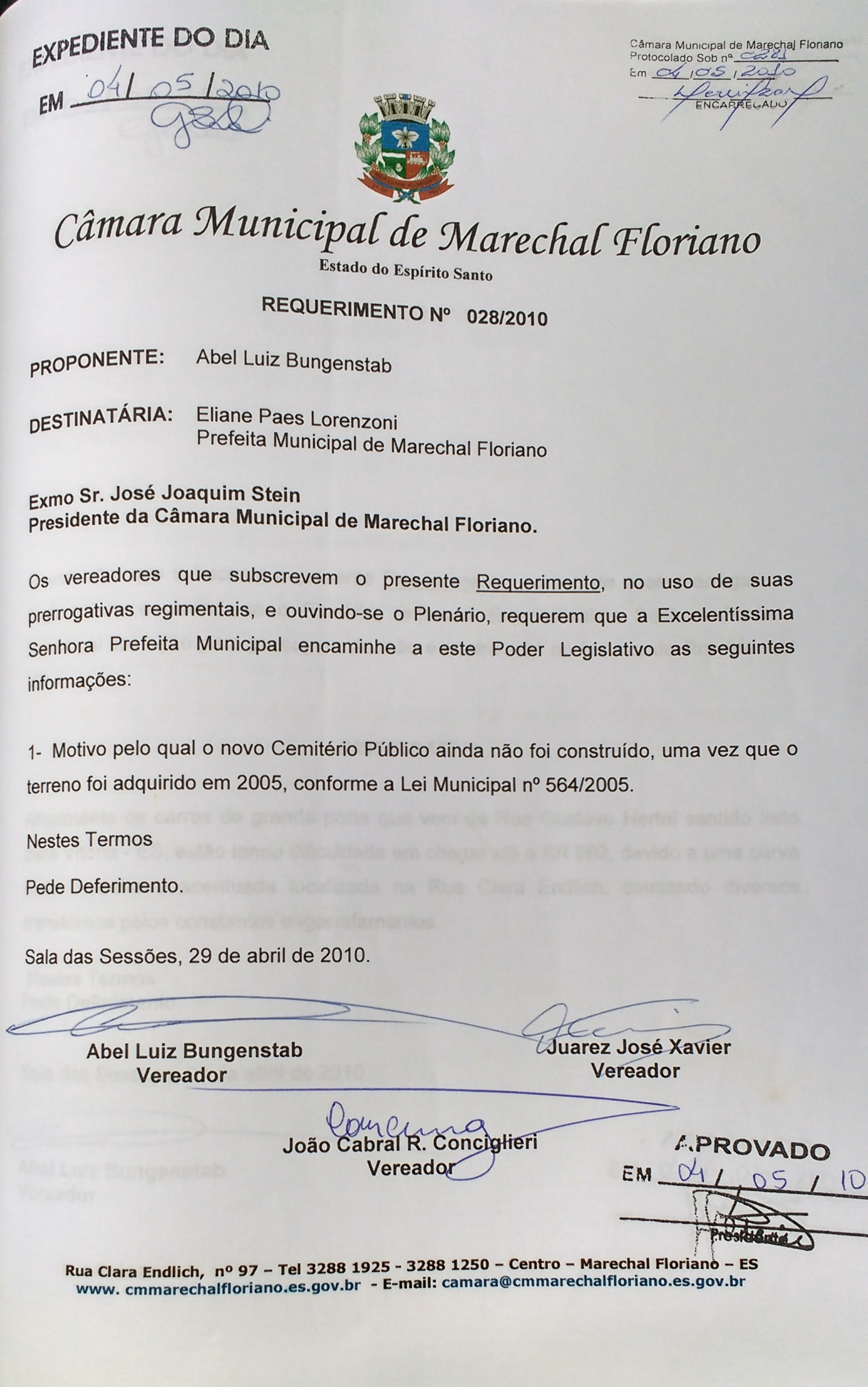 MOTIVO PELO QUAL O CEMITÉRIO PÚBLICO AINDA NÃO FOI CONSTRUÍDO, UMA VEZ QUE O TERRENO FOI ADQUIRIDO EM 2005, CONFORME A LEI MUNICIPAL N°564/2005.