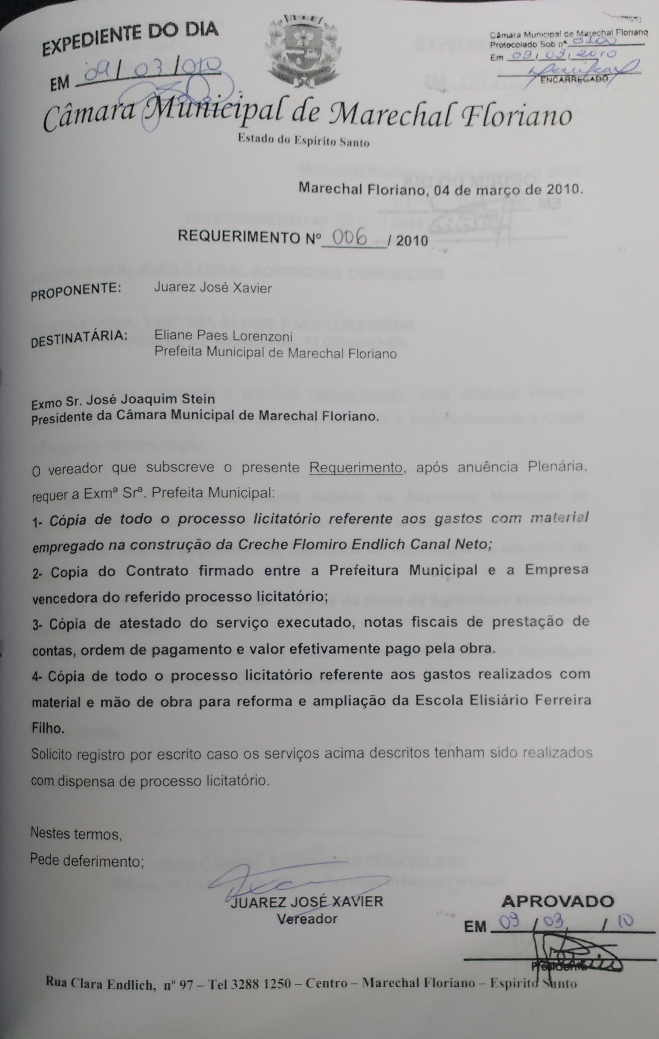 1-CÓPIA DE TODO O PROCESSO LICITATÓRIO REFERENTE AOS GASTOS COM MATERIAL EMPREGADO NA CONSTRUÇÃO DA CRECHE FLOMIRO ENDLICH CANAL NETO;