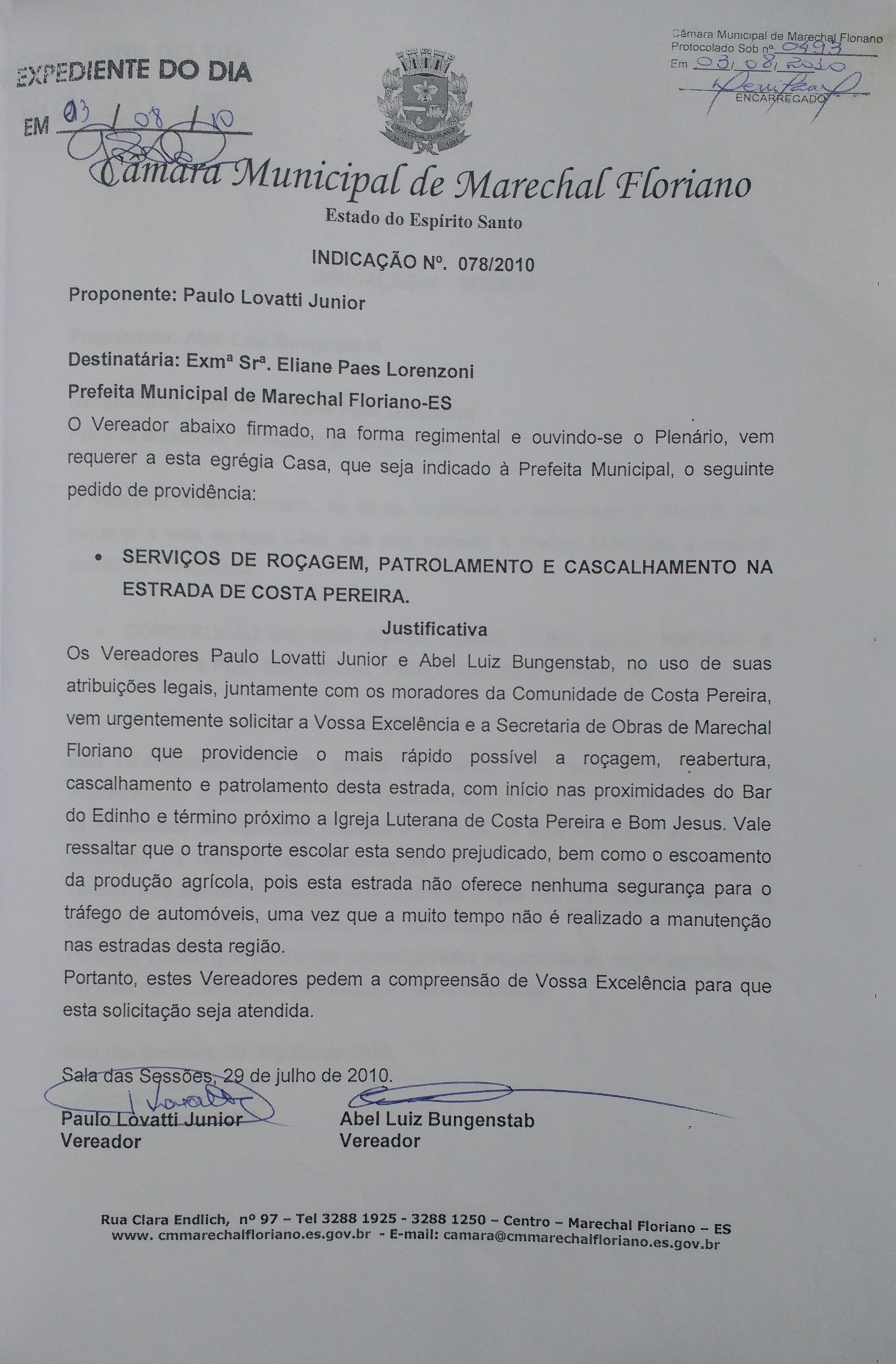 SERVIÇOS DE ROÇAGEM, PATROLAMENTO E CASCALHAMENTO NA ESTRADA DE COSTA PEREIRA.