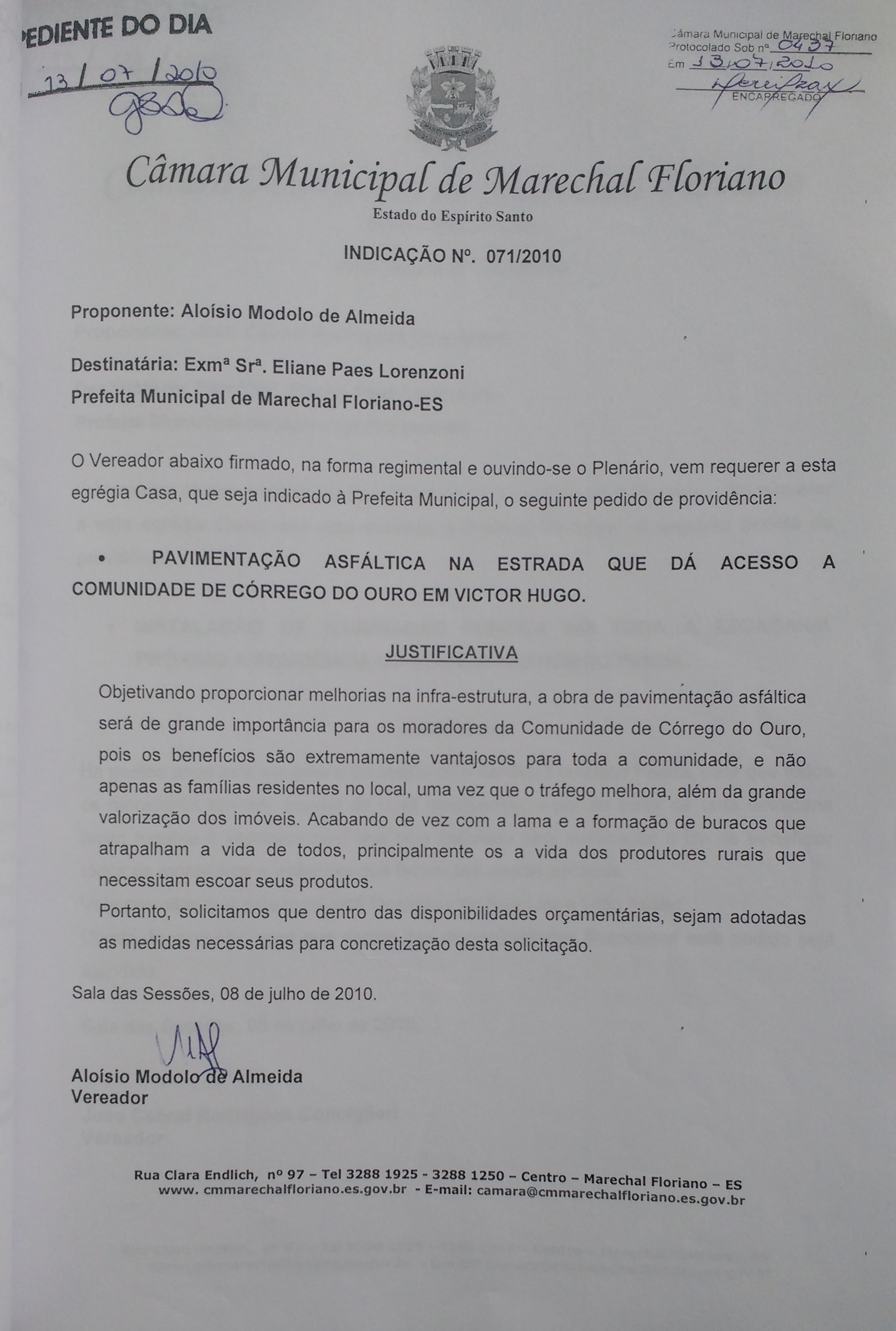 PAVIMENTAÇÃO ASFÁLTICA NA ESTRADA QUE DÁ ACESSO A COMUNIDADE DE CÓRREGO DO OURO EM VICTOR HUGO.