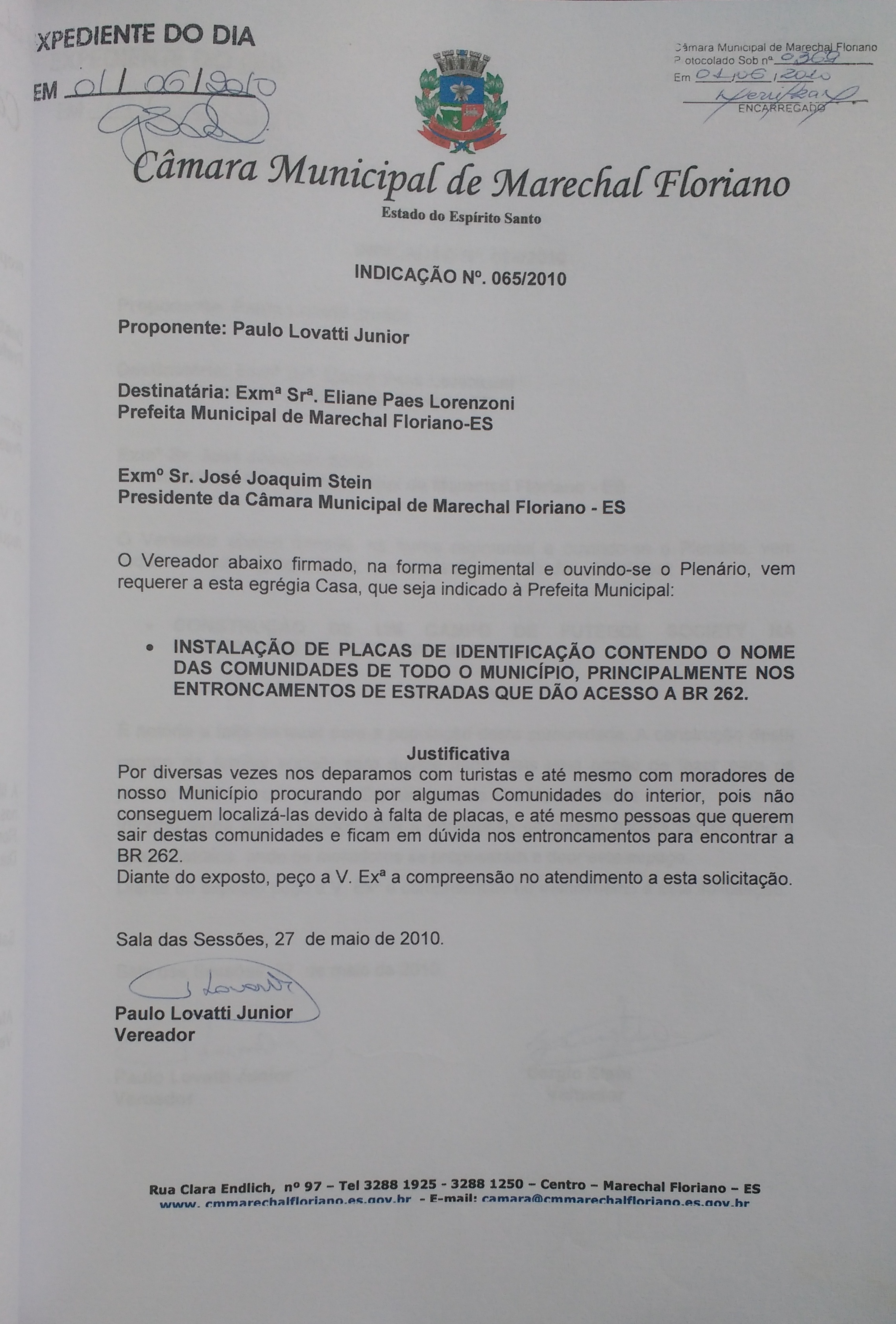 Indicação nº 65 de 2010