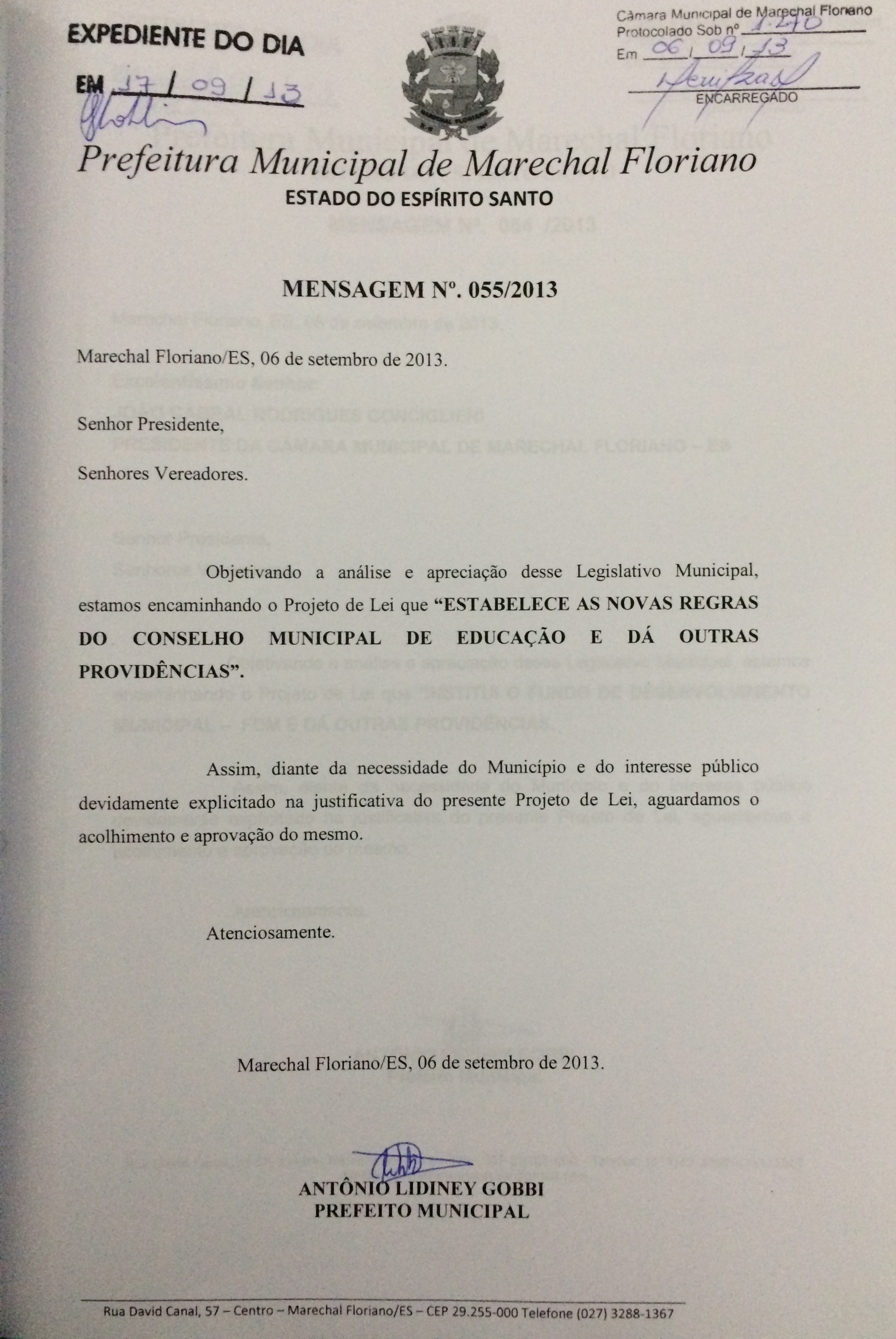 Mensagem nº 55 de 2013