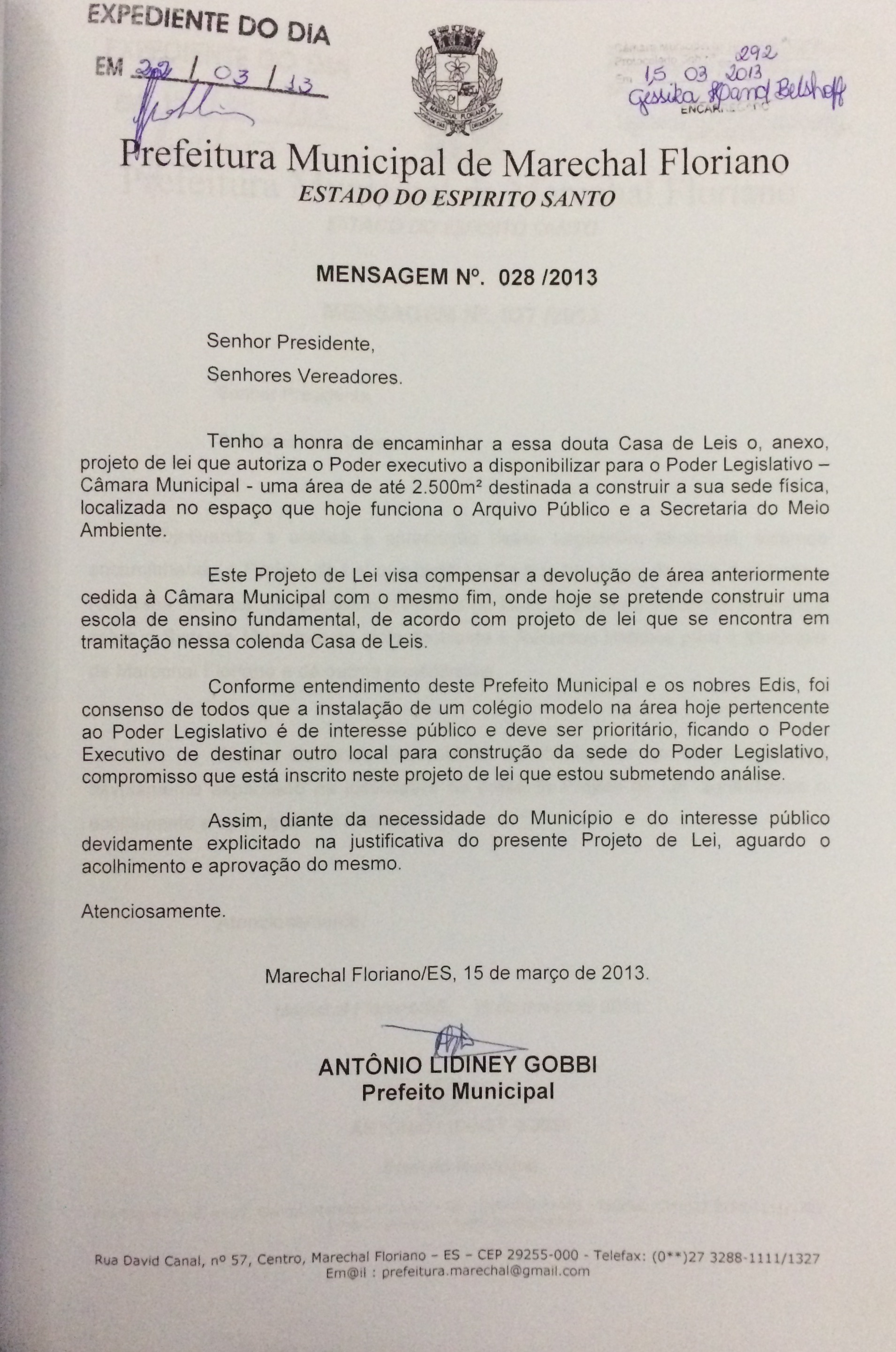 PROJETO DE LEI QUE AUTORIZA O PODER EXECUTIVO A DISPONIBILIZAR PARA O PODER LEGISLATIVO -CÂMARA MUNICIPAL- UMA ÁREA DE ATÉ 2.500M² DESTINADA A CONSTRUIR A SUA SEDE FÍSICA, LOCALIZADA NO ESPAÇO QUE HOJE FUNCIONA O ARQUIVO PUBLICO E A SECRETARIA DO MEIO AMBIENTE.