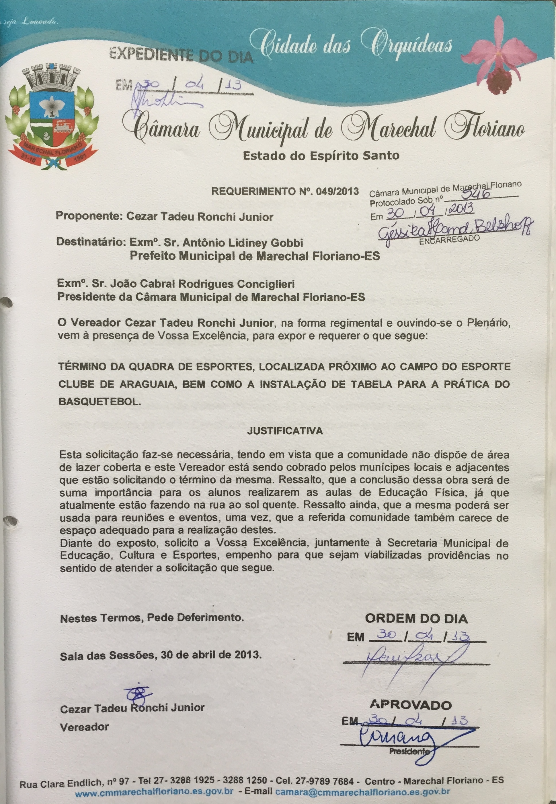TÉRMINO DA QUADRA DE ESPORTES, LOCALIZADA PRÓXIMO AO CAMPO DO ESPORTE CLUBE ARAGUAIA, BEM COMO A INSTALAÇÃO DE TABELA PARA A PRÁTICA DO BASQUETEBOL.