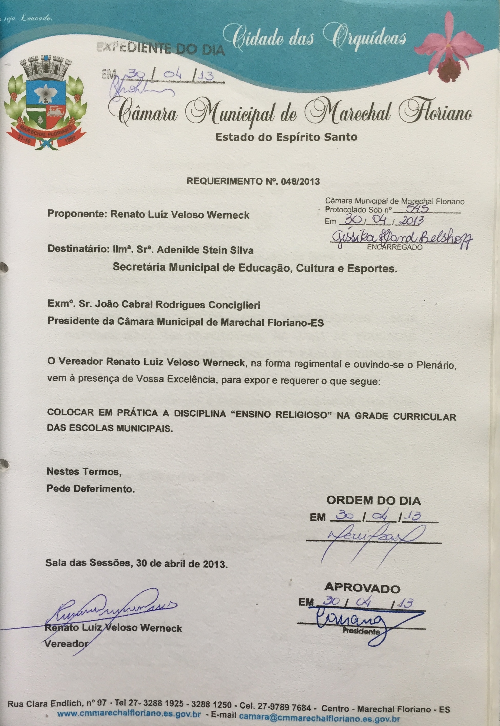 COLOCAR EM PRÁTICA A DISCIPLINA "ENSINO RELIGIOSO" NA GRADE CURRICULAR DAS ESCOLAS MUNICIPAIS.