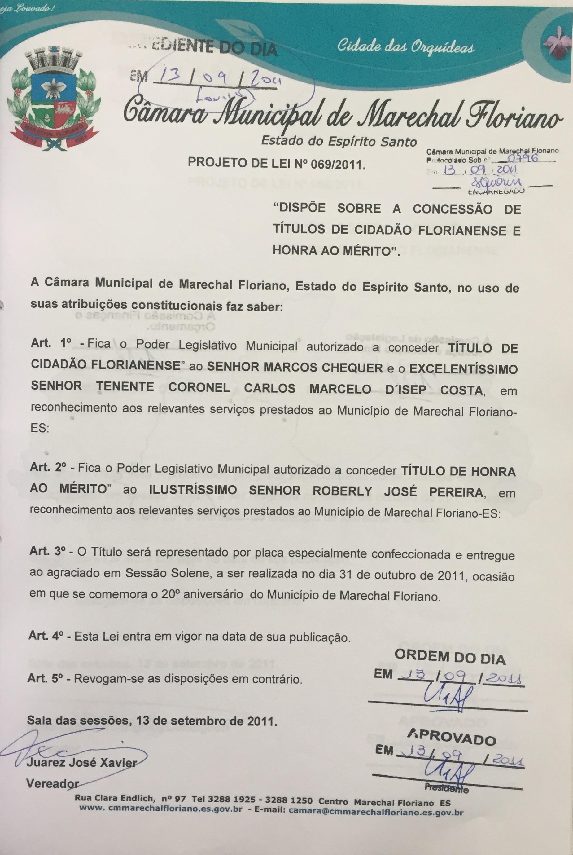 Projeto de Lei Ordinária nº 69 de 2011