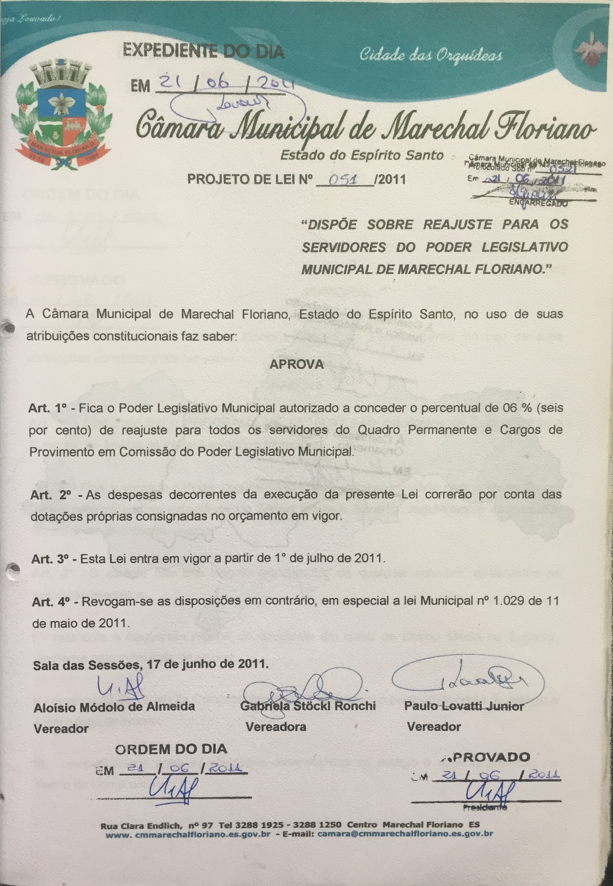 DISPÕE SOBRE REAJUSTE PARA OS SERVIDORES DO PODER LEGISLATIVO MUNICIPAL DE MARECHAL FLORIANO.