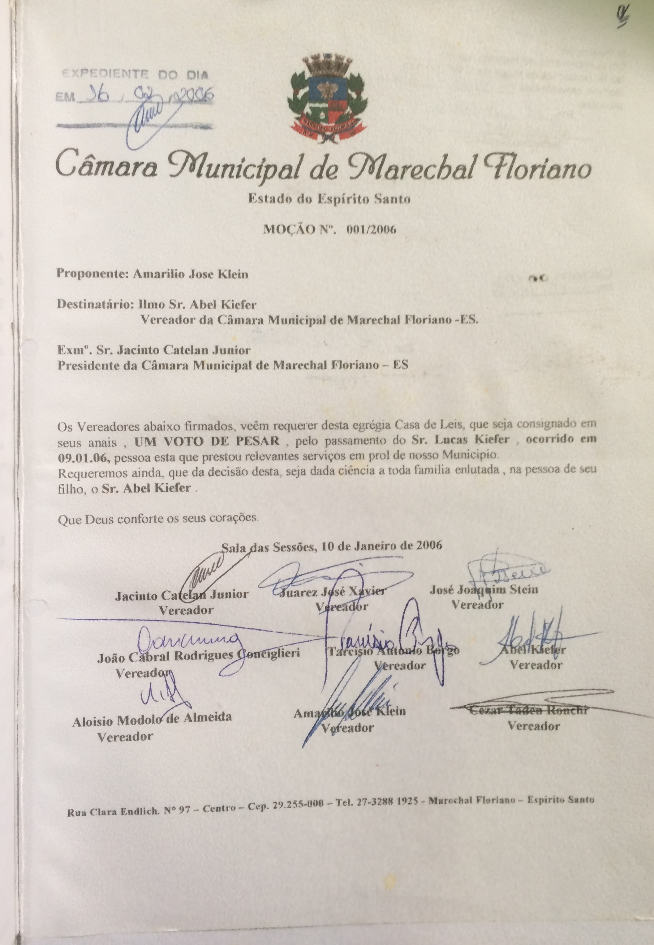 MOÇÃO DE PESAR PELO PASSAMENTO DO SR. LUCAS KIEFER, OCORRIDO EM 09/01/2006.