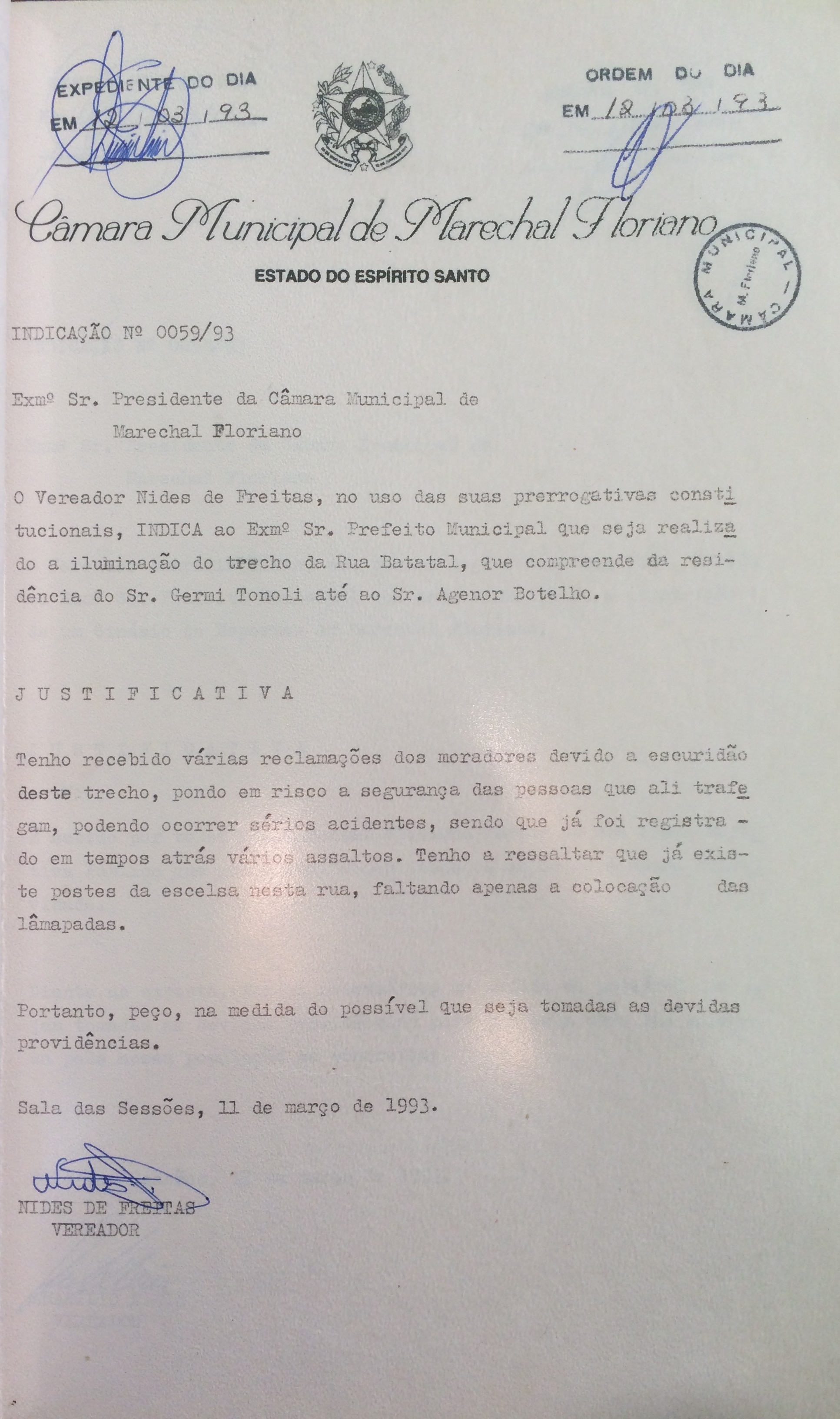 INDICA QUE SEJA REALIZADO A ILUMINAÇÃO DO TRECHO DA RUA BATATAL, QUE COMPREENDE DA RESIDÊNCIA DO SR. GERMI TONOLI ATÉ AO SR. AGENOR BOTELHO.