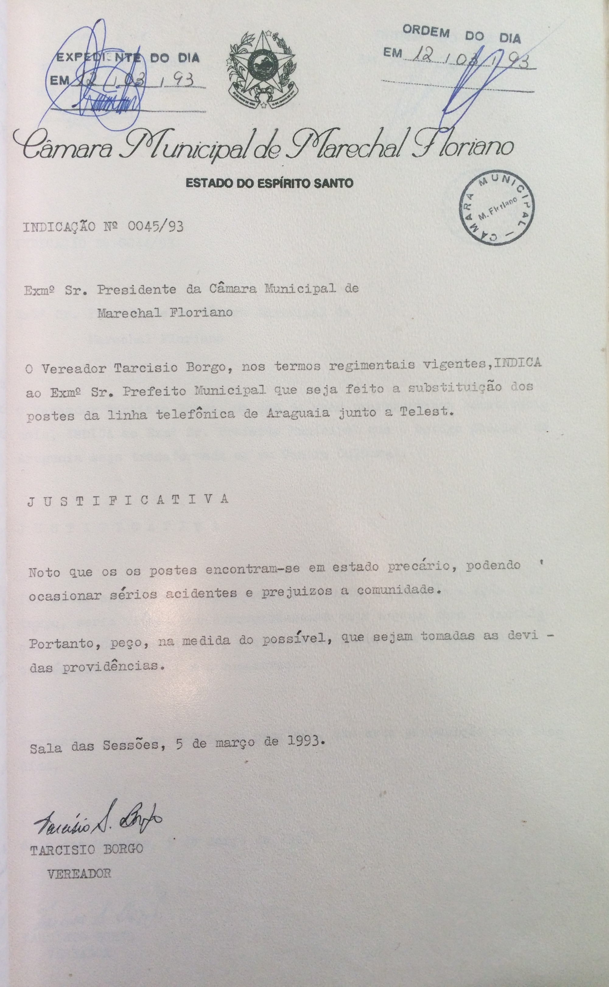 INDICA QUE SEJA FEITO A SUBSTITUIÇÃO DOS POSTES DA LINHA TELEFÔNICA DE ARAGUAIA JUNTO A TELEST.