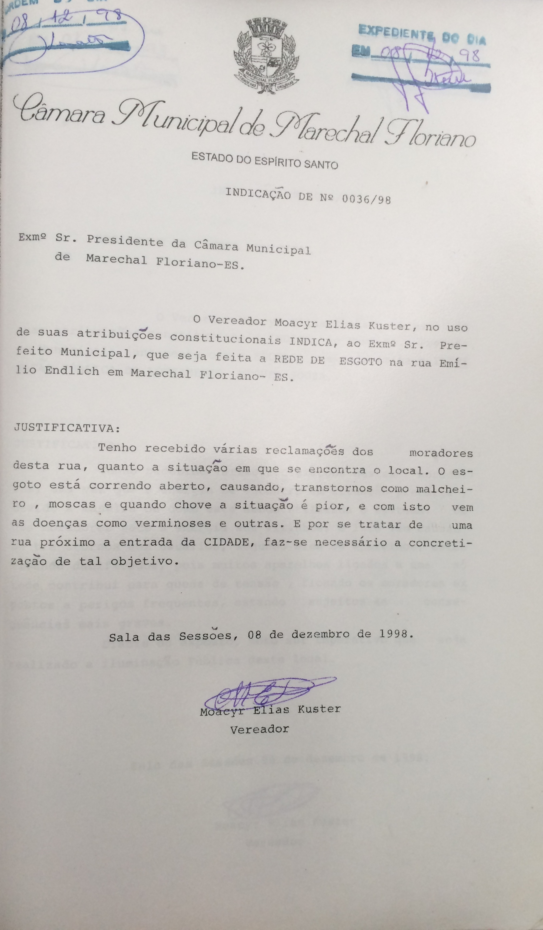 INDICA QUE SEJA FEITA A REDE DE ESGOTO NA RUA EMILIO ENDLICH EM MARECHAL FLORIANO-ES.
