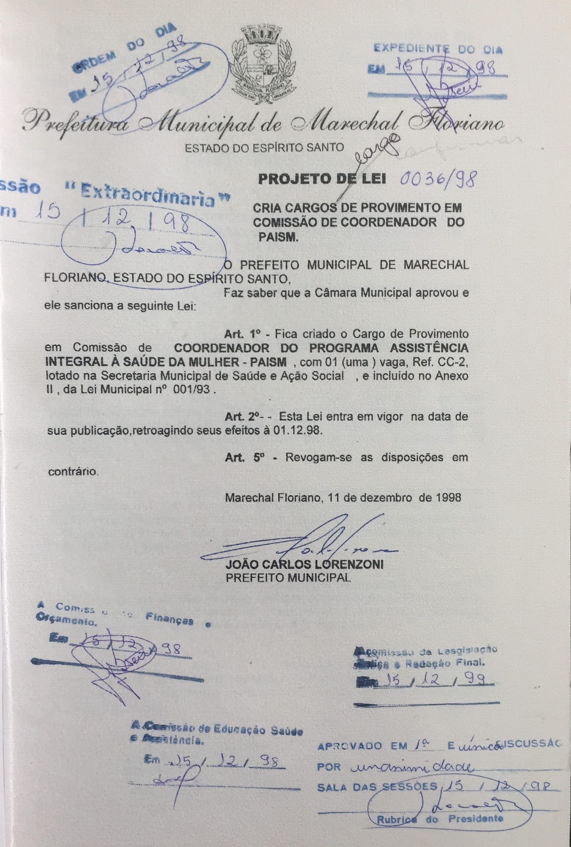 Projeto de Lei Ordinária nº 36 de 1998
