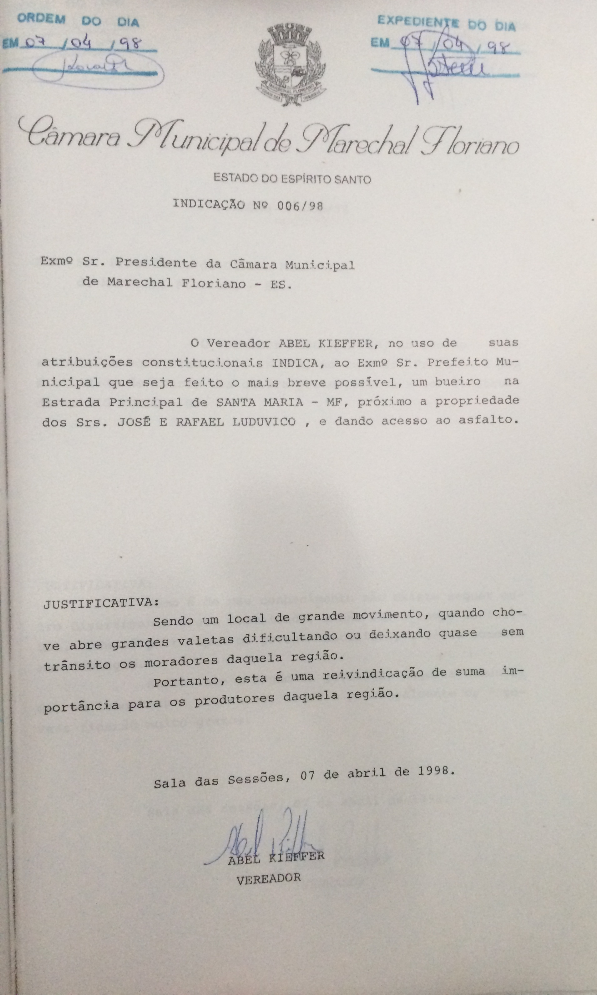 INDICA QUE SEJA FEITO O MAIS BREVE POSSÍVEL, UM BUEIRO NA ESTRADA PRINCIPAL DE SANTA MARIA-MF, PRÓXIMO A PROPRIEDADE DOS SRS. JOSÉ E RAFAEL LUDOVICO, E DANDO ACESSO AO ASFALTO.
