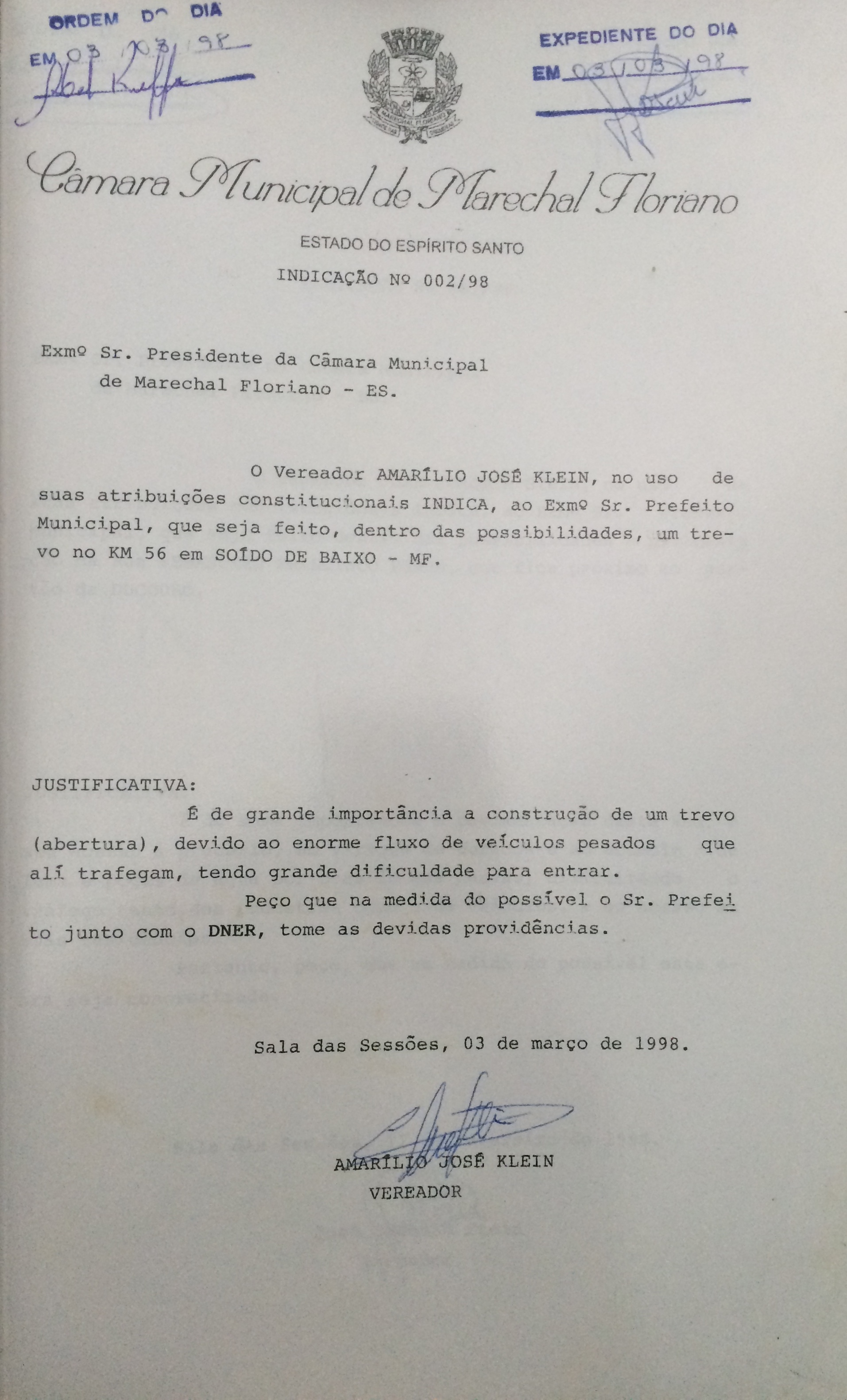 INDICA QUE SEJA FEITO DENTRO DAS POSSIBILIDADES, UM TREVO NO KM 56 EM SOÍDO DE BAIXO-MF.