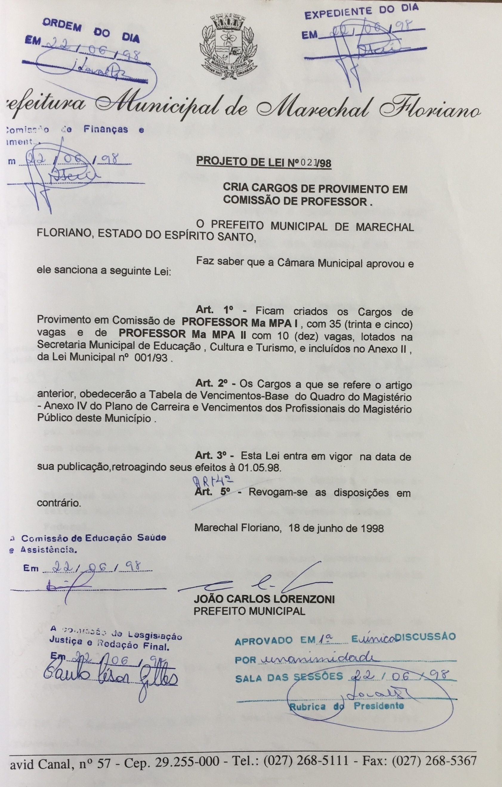 CRIA CARGOS DE PROVIMENTO EM COMISSÃO DE PROFESSOR.