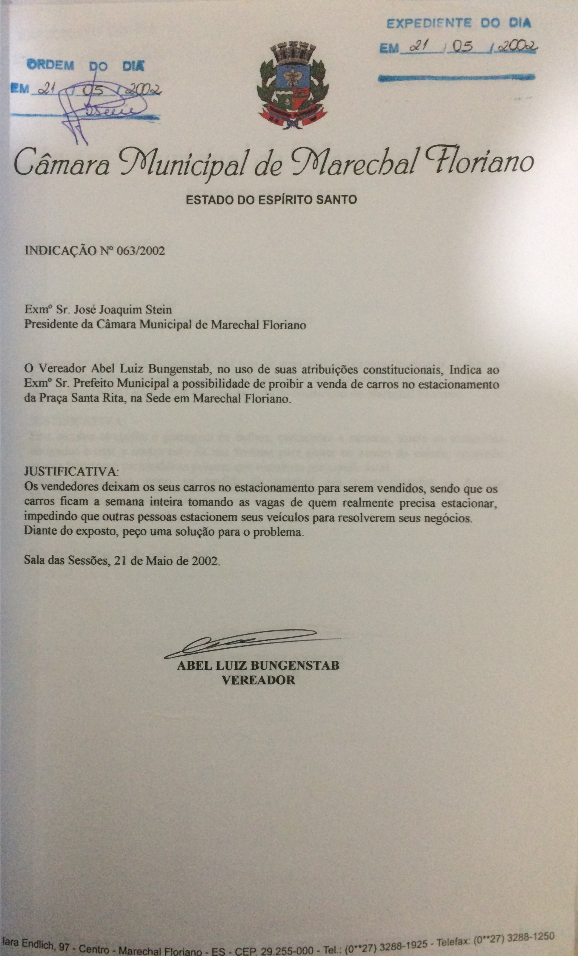 Indicação nº 63 de 2002