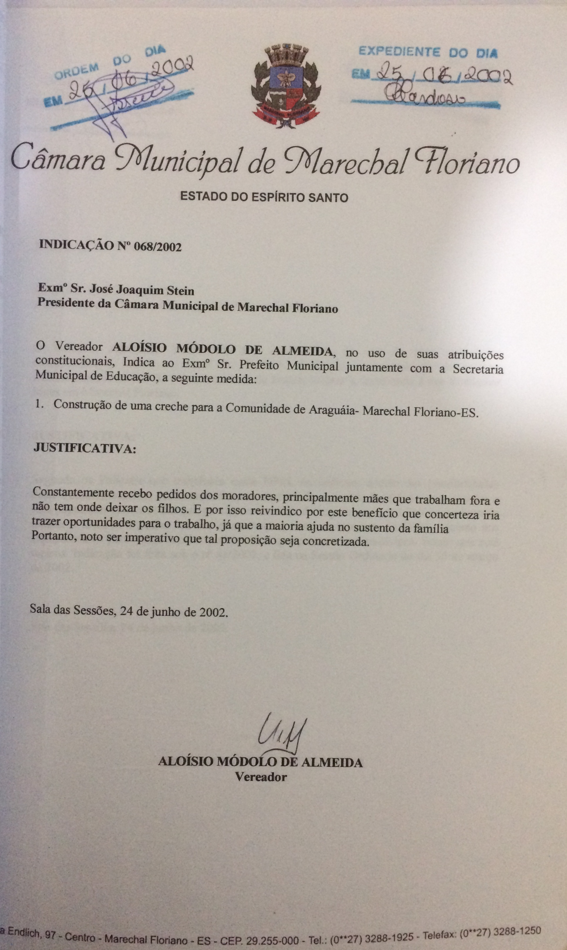 1. CONSTRUÇÃO DE UMA CRECHE PARA A COMUNIDADE DE ARAGUAIA - MARECHAL FLORIANO-ES.