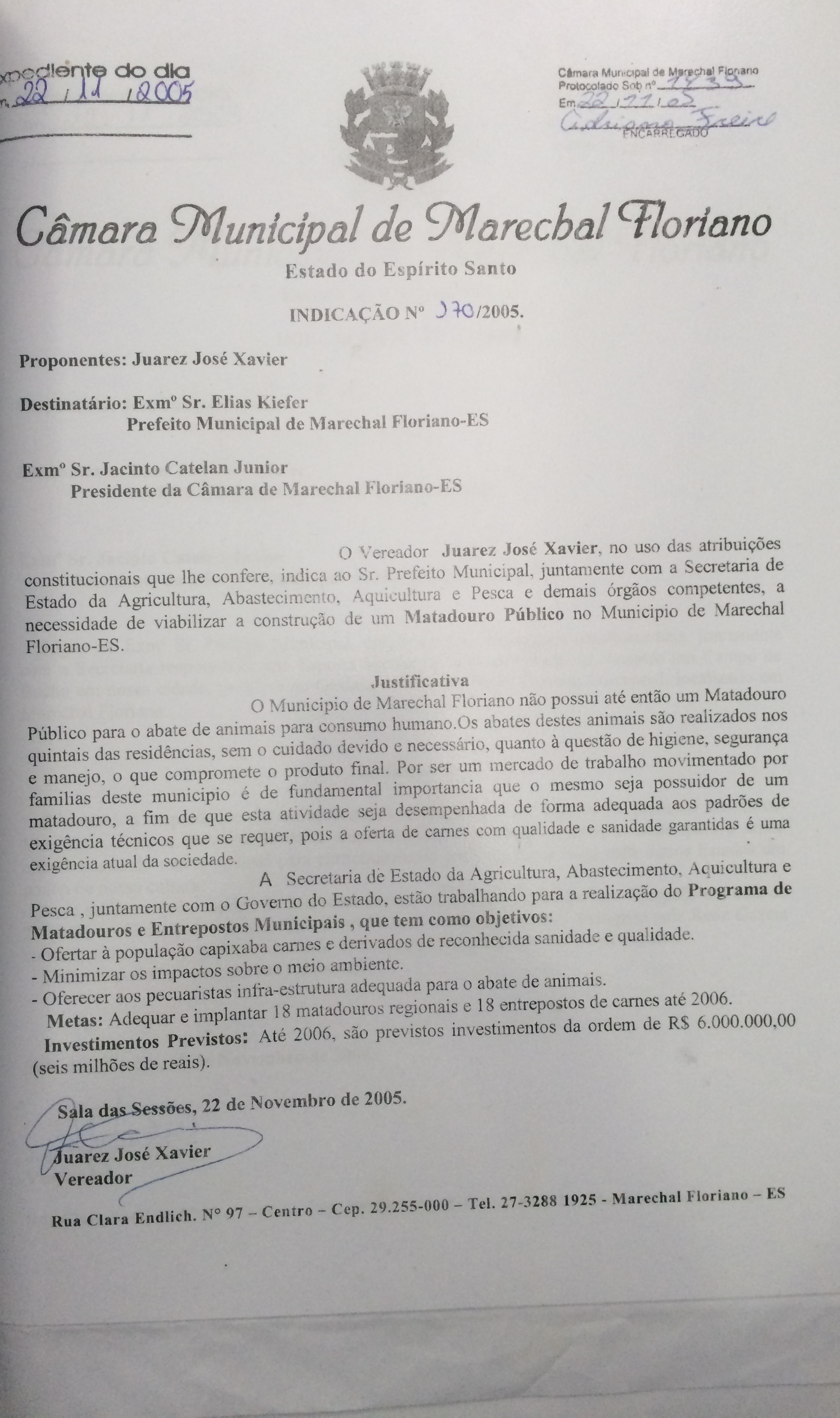 INDICA A NECESSIDADE DE CONSTRUÇÃO DE UM MATADOURO PÚBLICO NO MUNICÍPIO DE MARECHAL FLORIANO-ES.