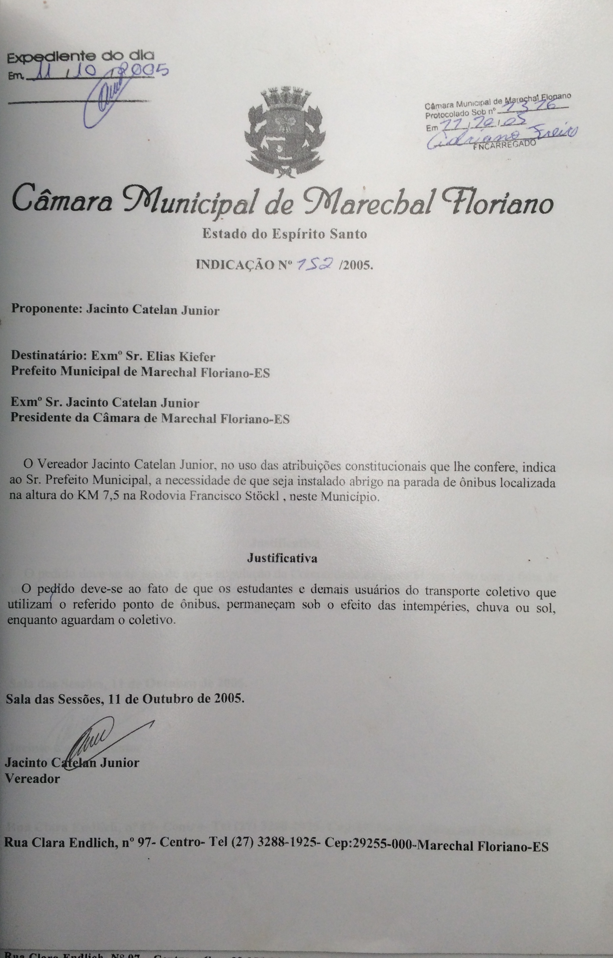 INDICA A NECESSIDADE QUE SEJA INSTALADO ABRIGO NA PARADA DE ÔNIBUS LOCALIZADA NA ALTURA DO KM 7,5 NA RODOVIA FRANCISCO STOCKL, NESTE MUNICÍPIO.