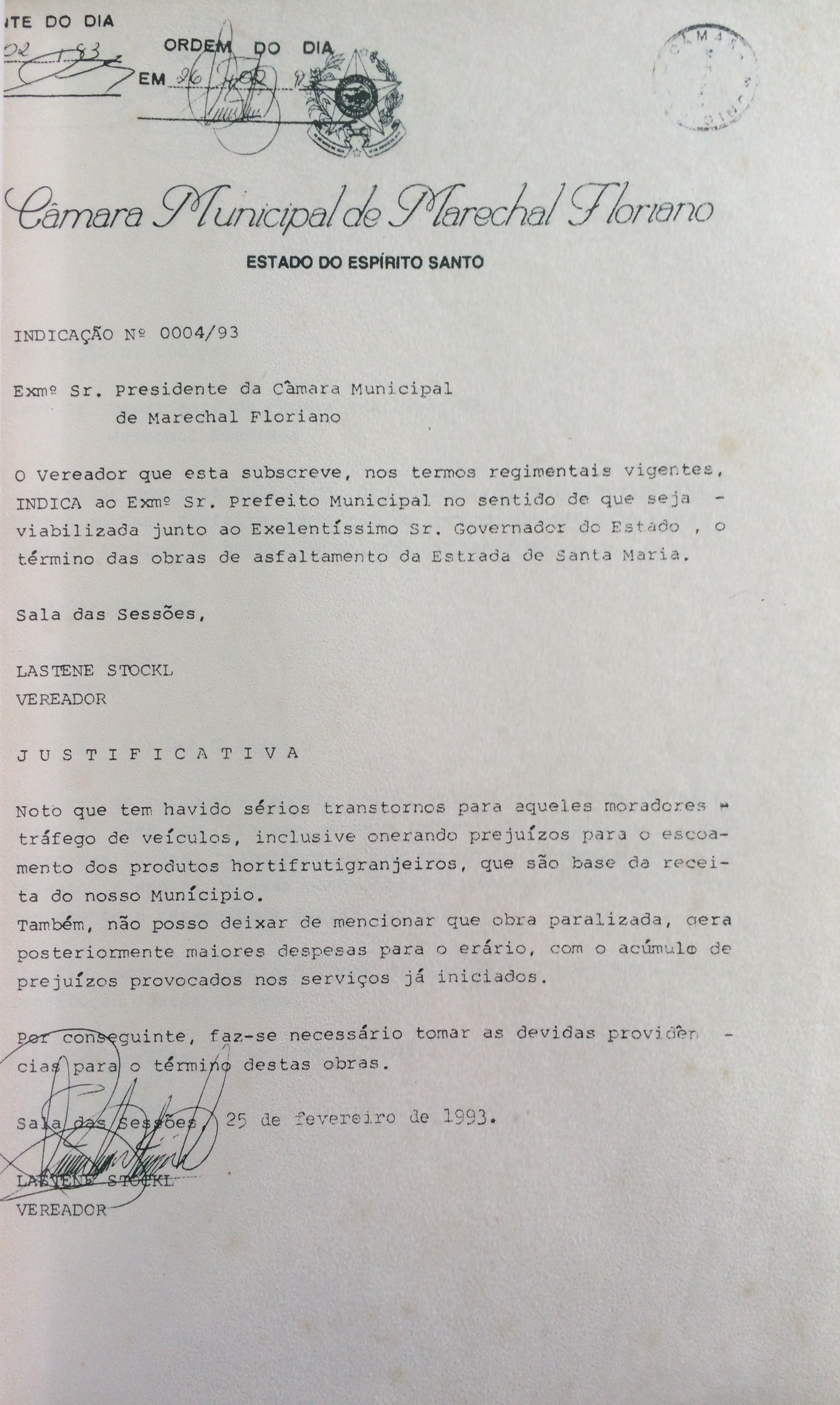 Ementa: "DISPÕE SOBRE A CONCESSÃO DE TÍTULO DE "CIDADÃO FLORIANENSE, À SRª. ELZA STEIN DAS CHAGAS".