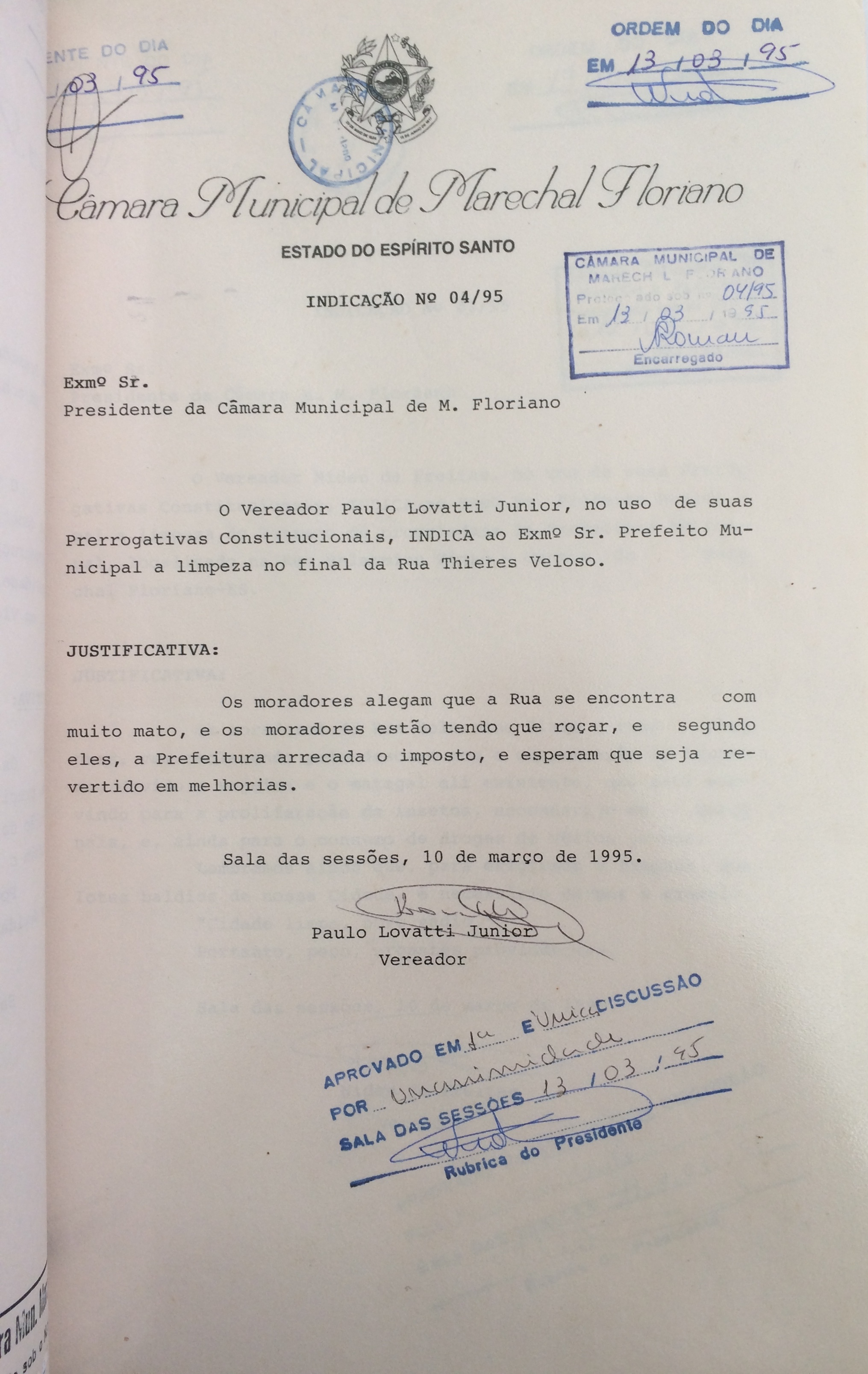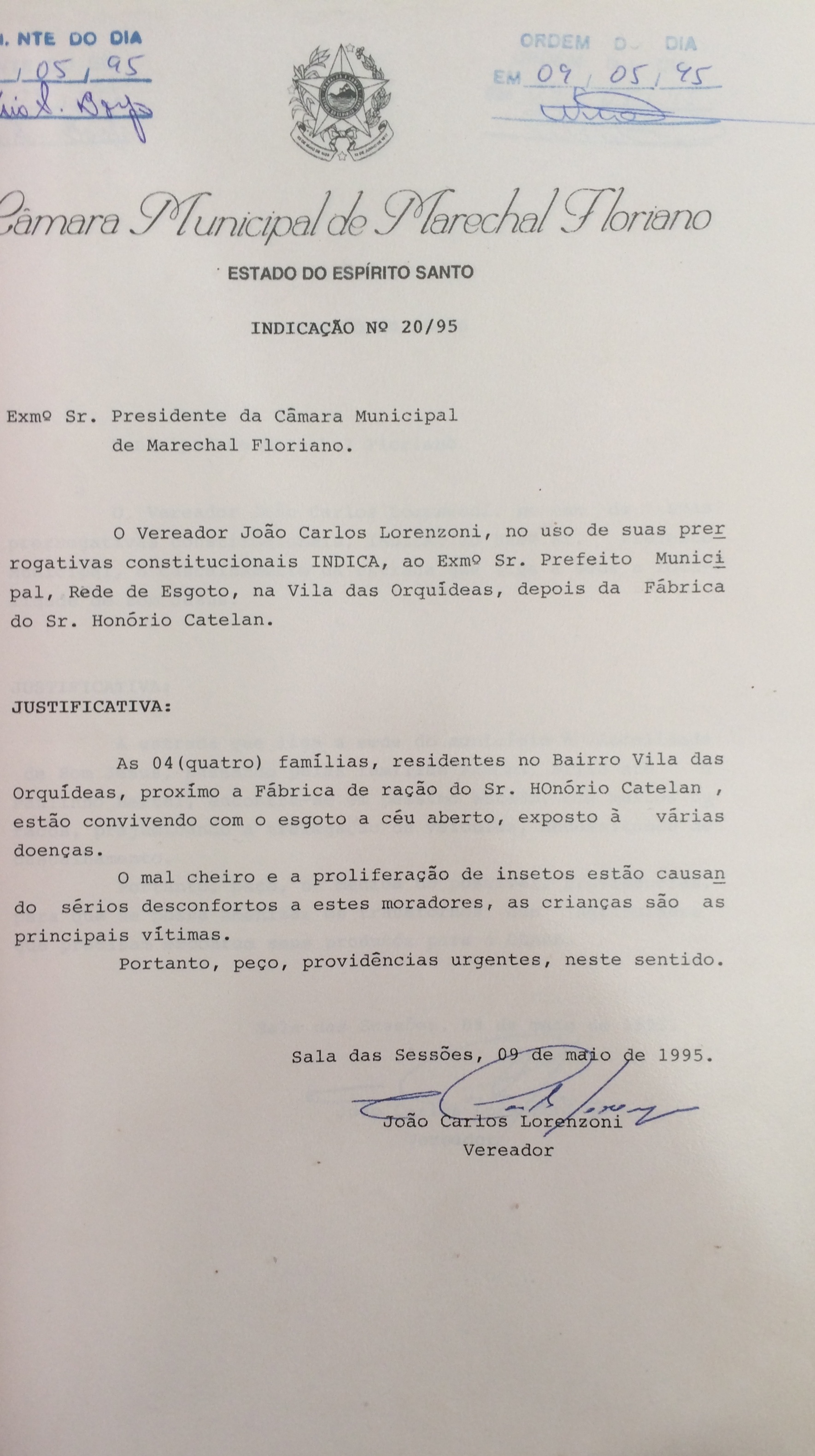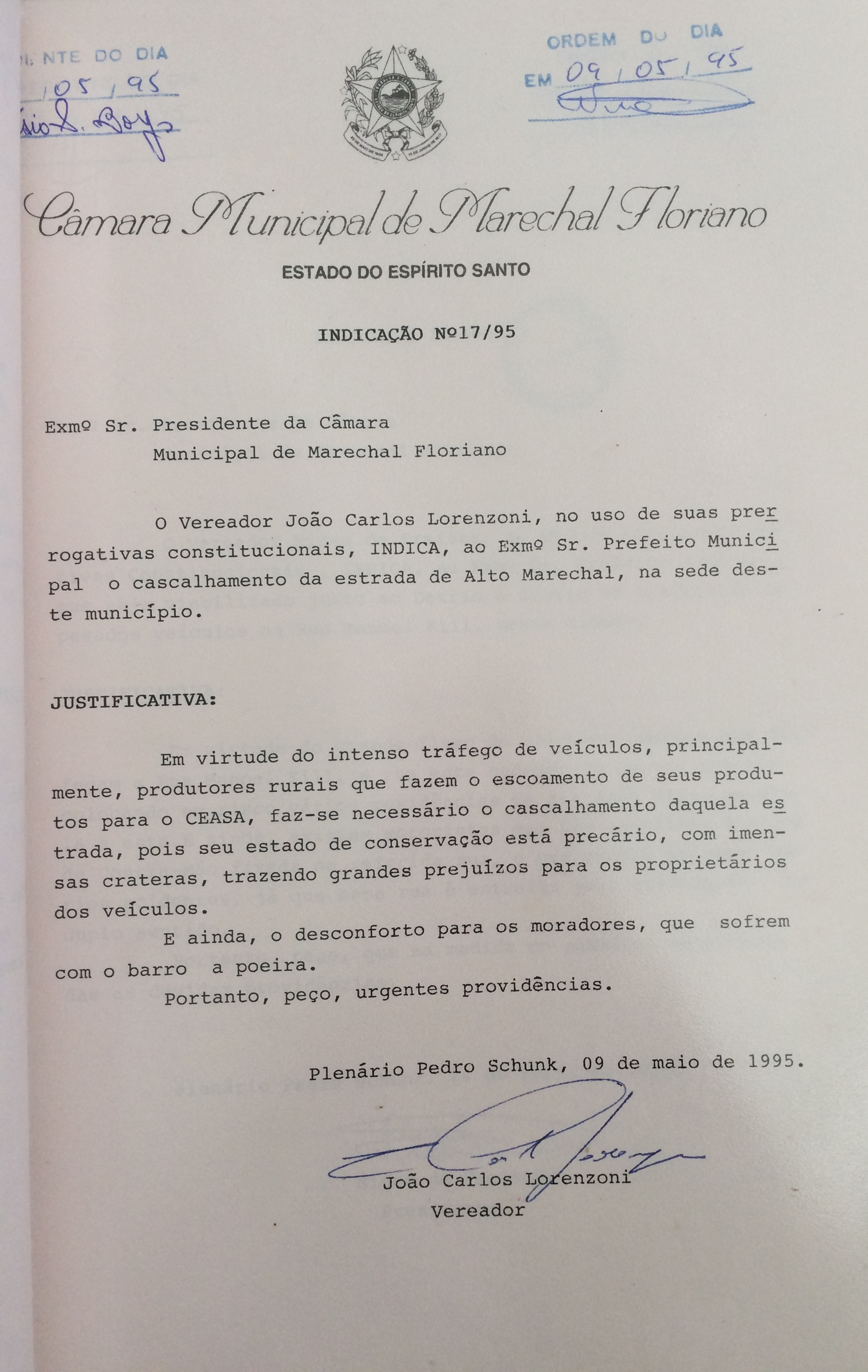 Ementa: INDICA A COLOCAÇÃO DE UM AUT DOOR, COM A "SLOGAN" DE MARECHAL FLORIANO, NAS DIVISAS DO MUNICÍPIO.
