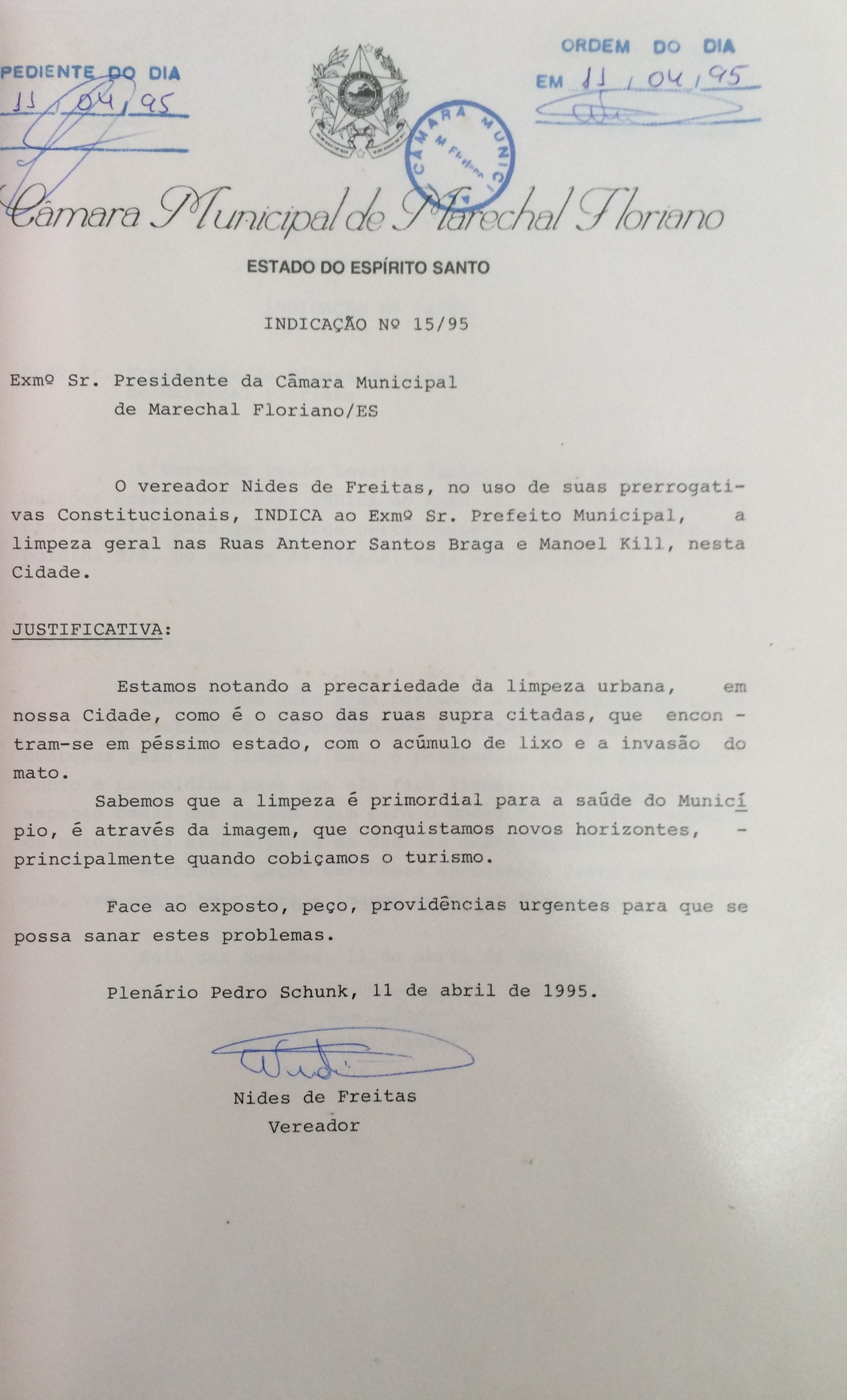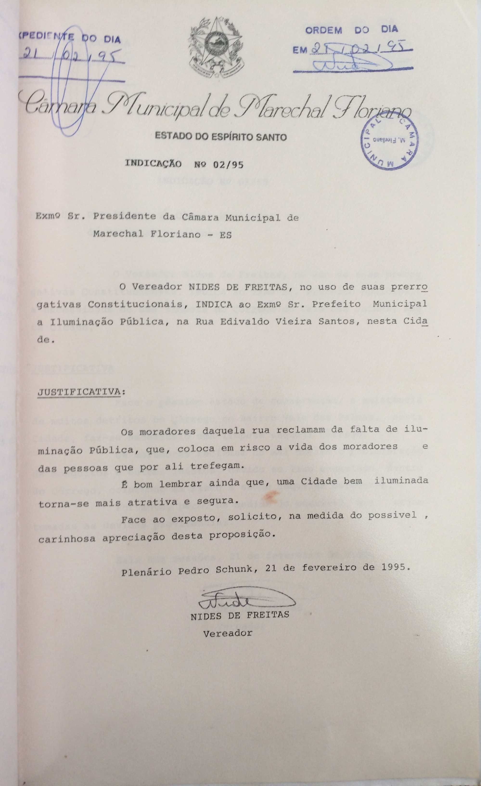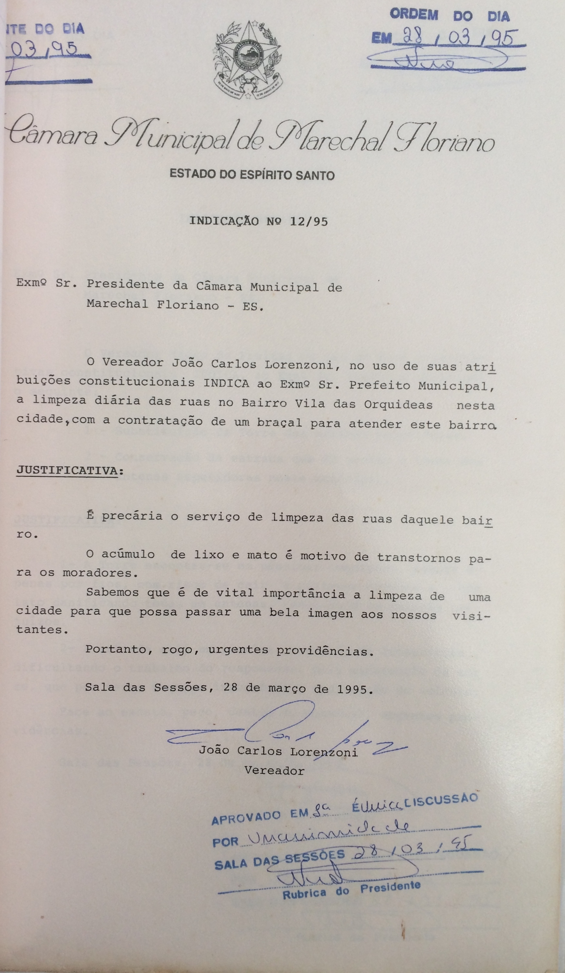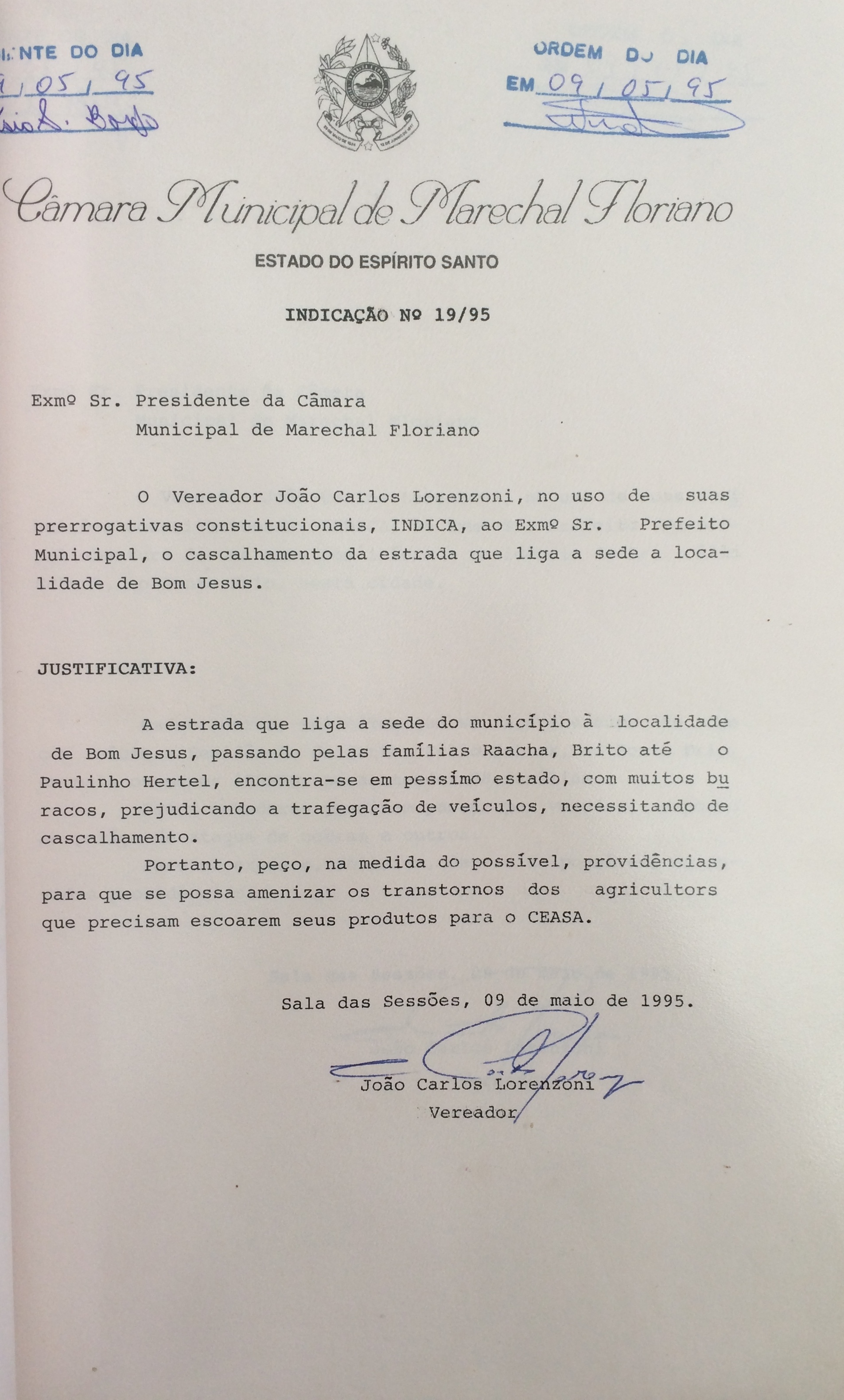 Ementa: INDICA A COLOCAÇÃO DE UM AUT DOOR, COM A "SLOGAN" DE MARECHAL FLORIANO, NAS DIVISAS DO MUNICÍPIO.