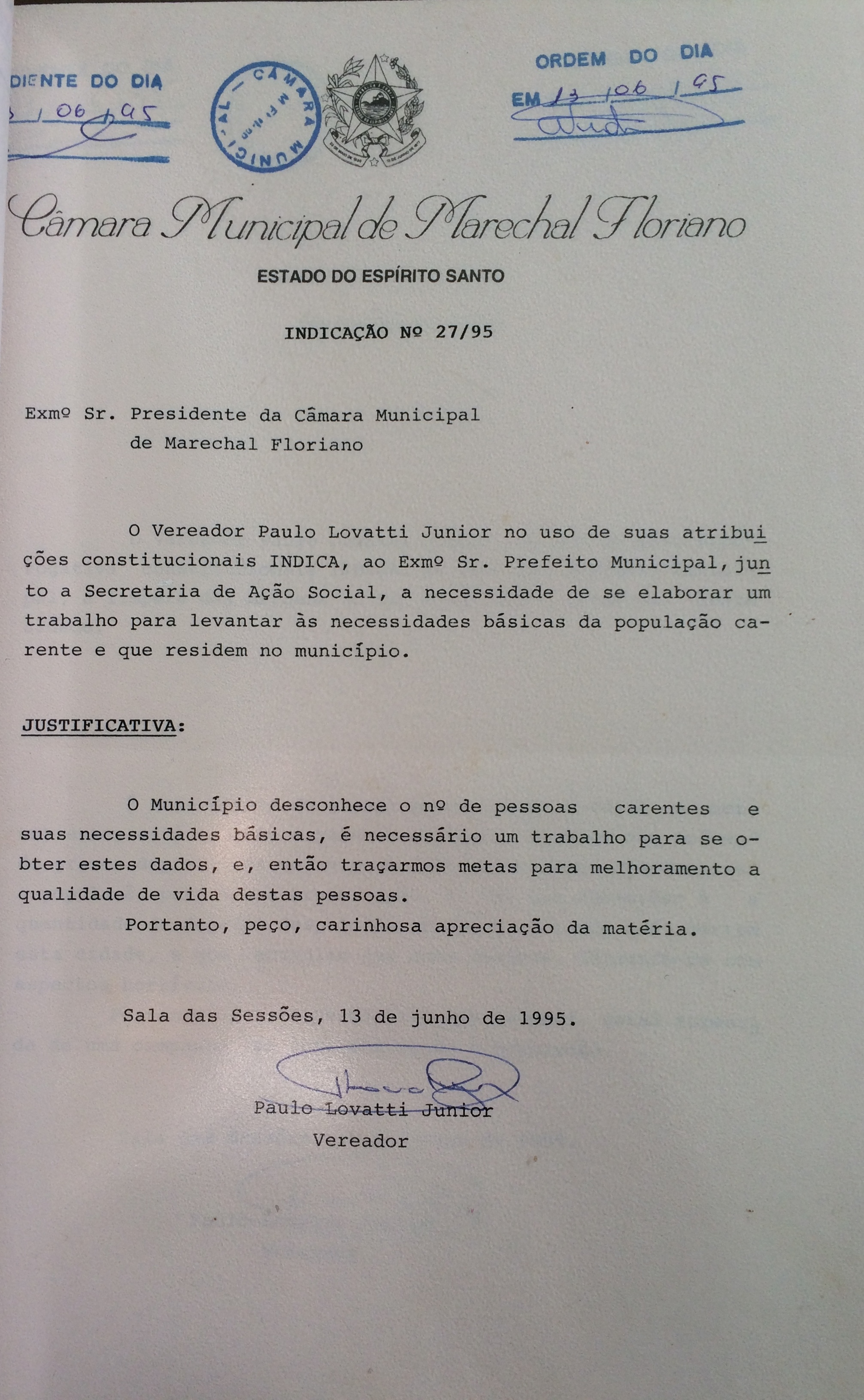 Ementa: INDICA A NECESSIDADE DE SE ELABORAR UM TRABALHO PARA LEVANTAR ÀS NECESSIDADES BÁSICAS DA POPULAÇÃO CARENTE E QUE RESIDEM NO MUNICÍPIO.