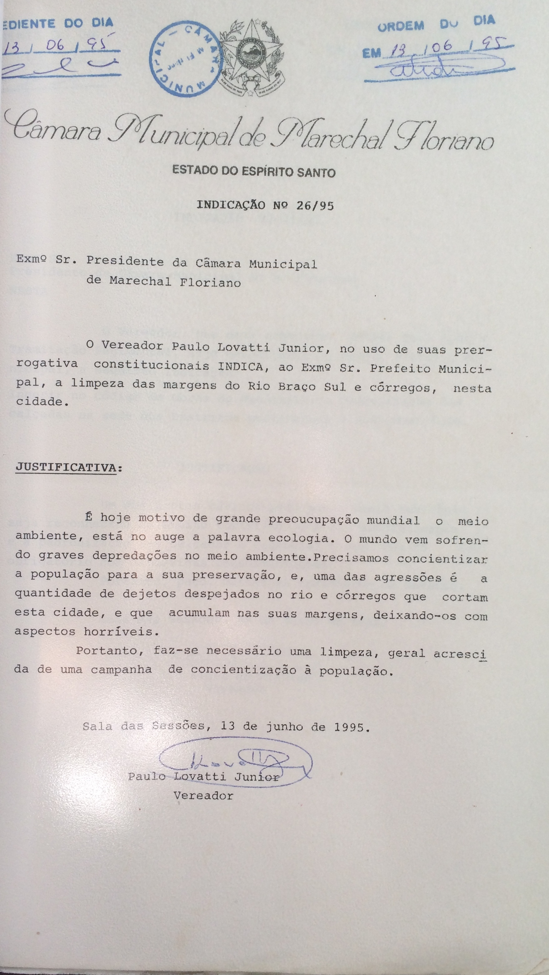 Ementa: INDICA A LIMPEZA DAS MARGENS DO RIO BRAÇO SUL E CÓRREGOS, NESTA CIDADE.