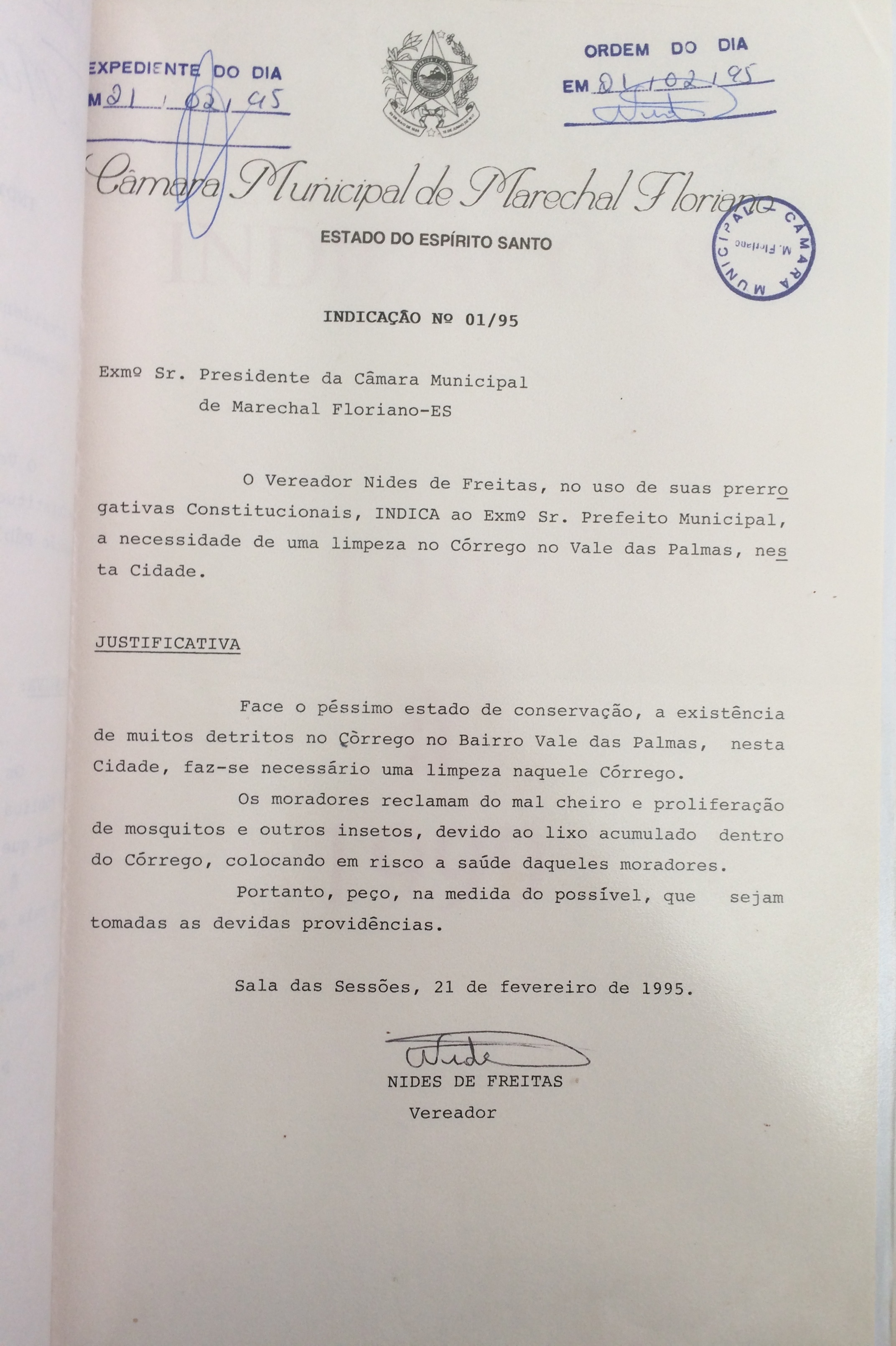Ementa: INDICA A NECESSIDADE DE UMA LIMPEZA NO CÓRREGO NO VALE DAS PALMAS, NESTA CIDADE.