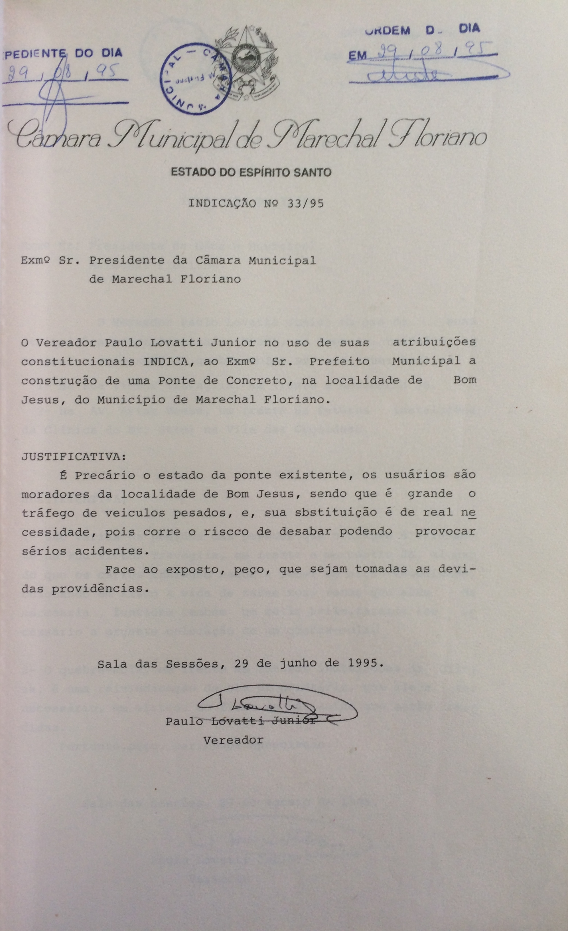 Ementa: INDICA A CONSTRUÇÃO DE UMA PONTE DE CONCRETO, NA LOCALIDADE DE BOM JESUS, DO MUNICÍPIO DE MARECHAL FLORIANO.