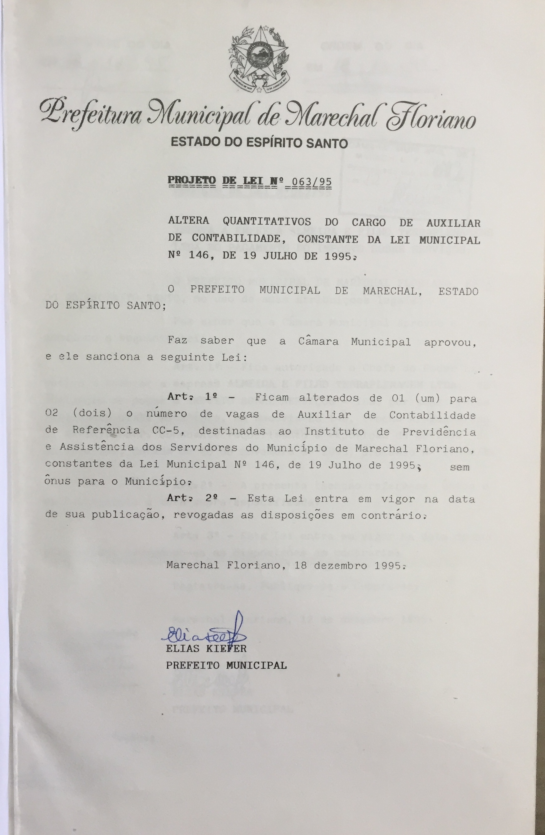 Ementa: DISPÕE SOBRE A PROPOSTA ORÇAMENTÁRIA DO INSTITUTO DE PREVIDÊNCIA E ASSISTÊNCIA DOS SERVIDORES DO MUNICÍPIO DE MARECHAL FLORIANO IPASMAF, PARA O EXERCÍCIO DE 1996.
